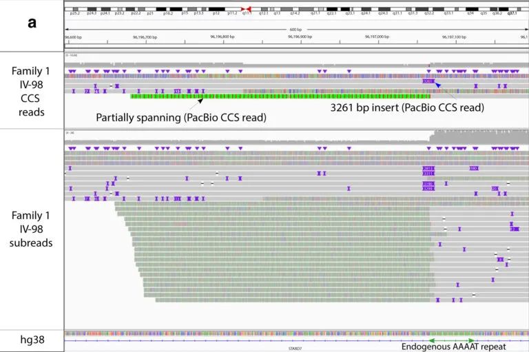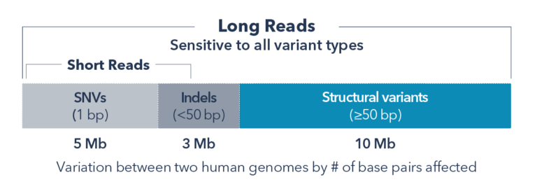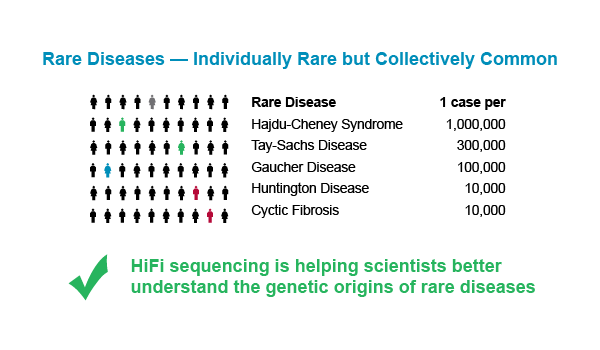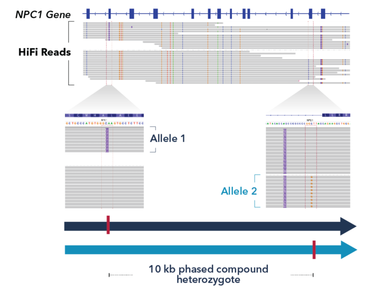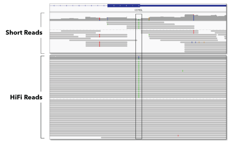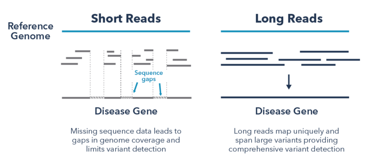 罕见病被定义为影响少数人的疾病 —— 在欧盟罕见病的发病率大约是不到2,000人中有1人,在美国,罕见病患者总人数不到200,000人(大约1,500人中有1人)。例如,Tay-Sachs病的发病率约为300,000分之一,而囊性纤维化更为常见,发病率约为10,000分之一。虽然每一种罕见病影响的人很少,但因为目前已经发现了超过7000种罕见病,所以罕见病患者并不罕见,它影响全球超过3亿人。 测序技术的发展提升了对罕见病的认知 由于超过70%的罕见疾病是遗传性的,世界各地的科学家已经广泛应用基因检测技术来确定罕见病的致病机制。识别遗传变异技术的不断改进提高了科学家了解罕见疾病的能力。 核型分析是第一个提供基因组视图的技术,揭示由染色体异常引起的疾病,如Turner综合征(只有1条X染色体,而不是通常女性所具有的2条X染色体)。后来,基因芯片提供了更高分辨率的视图,它能够识别大片段的拷贝数变异,如DiGeorge综合征(由22号染色体上约2.5Mb的片段缺失引起)。基于NGS测序的全外显子组或全基因组测序通过检测单核苷酸变异 (SNV)、插入和缺失以及一些更大的变异,取得了罕见病检测的更大进步。 但是,即使是基于NGS的全基因组测序,也只有不到一半的罕见病病例中能够发现了可能的致病原因,也就是说仍然约有一半罕见病病例的致病原因不明。这主要是因为基于NGS的全基因组测序也不能提供变异检测的全面视图。 PacBio HiFi测序是兼顾测序读长与准确率的测序技术,这使得HiFi测序可以对整个人类基因组上的每个碱基进行测序,从而可以检测到从SNV到大型结构变异 (SV) 的所有类型的变异。最终,通过检测更多变异,HiFi测序提供了更完整的基因组图和可能存在的任何异常。 短读长测序和长读长测序有什么区别? 顾名思义,短读长测序以短片段(100-350 个碱基对)的形式检测DNA,而长读长测序则测量DNA 的片段长度可以长达几万个碱基对。为什么这很重要?好吧,当试图表征具有两套单倍型基因组(一个来自父亲和一个来自母亲)的人类基因组时,每套单倍型基因组的长度为32亿个碱基对 —— 拥有更长的DNA片段意味着您: 需要更少的片段就能组成整个基因组的长度,并且没有未知序列的空白。可以更轻松地将测序reads映射到参考基因组上,从而更容易理解基因组上的一个区域如何连接到另一个区域。能够区分基因的单倍型,进而确定突变发生在来自父本或母本基因的哪个拷贝上。 短读长测序每条reads产生50-350个碱基对的读长,这会导至序列缺口和致病基因区域的不完整覆盖。长读长测序产生数万碱基长度的reads,提供跨基因组的高质量图谱,以进行全面的变异检测 事实证明,许多这些疾病背后的遗传变异正是短读长测序技术无法检测到的类型。从重复扩增到大的插入或缺失,致病性变异通常是大而复杂的结构元件,不能通过仅仅几百个碱基的短读长reads来跨越。准确地表征这些变异并捕获所有类型的变体需要更长的测序reads,以便在一条测序reads中能够覆盖整个变异。 HiFi测序 —— 检测罕见病所有变异类型的关键 与短读长测序平台产生的数据不同,高度准确的长读长测序(称为 HiFi 测序)可生成极长的读长(>25 kb),甚至涵盖最大的结构变异。HiFi测序提供了最全面的基因组变异视图,能够识别通过短读长测序遗漏的更大和更复杂的结构变异(SV),同时能够检测短读长测序能够检测的单碱基变异(SNVs)。 PacBio 高度准确的长读取提供了对所有变异类型的全面检测,从单核苷酸变异 (SNV) 到插入和缺失以及结构变异 HiFi测序的长读长和高准确度 (>99.9%) 特性提供了非常完整的基因组组装、具有单碱基分辨率的全面变异检测以及代表母本和父本单倍型的定相。 用HiFi测序解开罕见病的秘密 HiFi测序通过识别短读长测序和其他技术遗漏的变异,已经在罕见病研究中产生了重大影响。已经有很多科研机构和临床机构开始应用PacBio HiFi测序来解决之前通过短读长测序不能解决的罕见病诊断难题。 有关更多详细信息,请查看下面这些未确诊的罕见疾病及其潜在致病变异类型的研究。 罕见病研究中的结构变异识别 PacBio测序技术如何在罕见疾病研究中发挥作用的最早例子之一来自斯坦福大学心脏病学家Euan Ashley和一名心脏和腺体患有一系列肿瘤的年轻人。八年的基因分析并没有得出确切的答案。Ashley的团队使用PacBio全基因组测序的一种新方法在与卡尼综合征相关的基因中发现了一种新的结构变异,后来被证实为正确的突变和发现。 最近,HudsonAlpha 的一个小组在对一名智障、癫痫和言语迟缓的年轻女孩的研究中发现了新证据。通过HiFi测序,HudsonAlpha的科学家在他们认为可能致病的CDKL5 基因内含子中发现了近7,000个碱基的从头杂合插入,如下图所示。作者报告说,由于CDKL5与早期婴儿癫痫性脑病相关,研究人员优先考虑这一事件作为最有可能的候选变异。 在日本横滨大学医学院的案例中,研究人员应用了HiFi测序,以找出双胞胎12岁女孩出现未确诊综合征的原因。临床症状与Dravet 综合征相符,但没有可用的分子证据来证实这一发现。他们对双胞胎中的一个和父母双方进行了测序,在以前与影响女孩的相同症状相关的区域中发现了一个新的12 kb倒位。 三人家系的HiFi测序鉴定了破坏基因BRPF1的致病性杂合12 kb 从头倒位。SNV(标有“*”)表明倒位发生在母亲所携带的等位基因上 检测基因难测区域中的小变