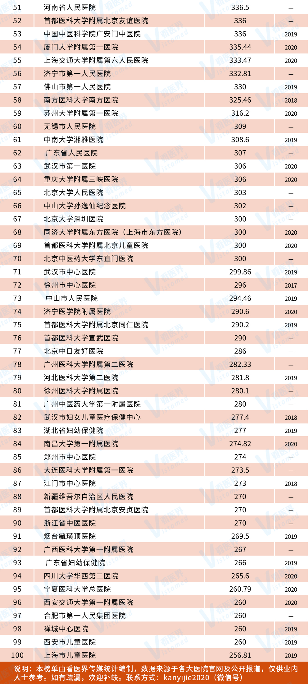 来了!2021中国医院门诊量100强榜