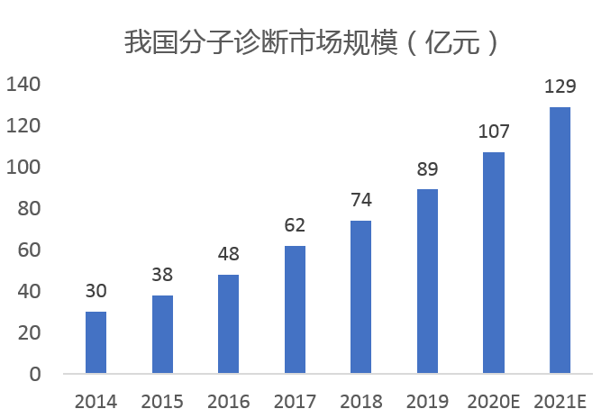 PCR技术自20世纪80年代问世以来,几经技术更迭,如今在感染性疾病、肿瘤、遗传病等医疗领域获得了广泛应用。第一代PCR技术在扩增后,通过凝胶电泳进行分析,仅可获得定性结果。直到20世纪90年代,伴随着生物荧光技术的发展,实时荧光定量PCR(Quantitative Real-time PCR, qPCR)应运而生,并成为核酸定量检测的主流技术,沿用至今。由于qPCR为大体积反应系统,存在较多的背景干扰,无法获得绝对定量结果,随着检测要求的提高,qPCR逐渐无法满足临床一些超高灵敏度、精密度的检测要求。至20世纪末,Vogelstein 等提出数字PCR( digitalPCR,dPCR) 的概念,将一个样本分充分稀释,分配到不同的反应单元,每个单元包含少于或等于一个拷贝的目标分子( DNA 模板) ,在每个反应单元中进行单独、平行的PCR反应分,扩增结束后对各个反应单元的荧光信号进行统计学分析,以实现绝对定量及稀有等位基因的检测。 数字PCR技术原理 dPCR反应系统一般包含两部分,即PCR扩增和荧光定量。 与qPCR反应系统不同,dPCR在扩增前需进行样本稀释,构建多个独立反应单元,每个单元内包含一个或不含目标扩增核酸。这一步预处理目前主要实现方式包括:基于液滴微流控的微滴数字PCR(droplet digital PCR, ddPCR)和基于芯片式微流控的微阵列芯片式PCR。目前在数字PCR市场处于领先地位的伯乐(Bio-Rad)公司采用的技术为微滴数字PCR。完成样品的反应单元构建后,部分反应单元包含了靶标分子(阳性),而其他不包含(阴性)。单个分子可以被扩增一百万倍或更多。在扩增期间,TaqMan化学试剂及染料标记探针可用于检测特定序列的靶标。当不存在任何靶标序列时,没有信号累积。PCR分析后,阴性反应片段用于生成样品中靶标分子的绝对计数,而无需标准品或内标。 荧光定量分析时,不同于 qPCR对每个大体积反应系统循环进行实时荧光测定,dPCR 技术在扩增结束后对每个反应单元的荧光信号进行采集,最后根据泊松分布原理及阳性微滴的个数与比例得出靶分子的起始拷贝数或浓度。 在临床实际应用中,常需对多个指标同时进行测定,以提高效率,降低成本。由于dPCR技术单个反应腔仅包含一个或无目标核酸,无法通过qPCR的多腔室扩增与多荧光通道结合方式实现多目标同时检测。目前dPCR多指标检测可通过添加多种荧光染料,进行不同目标物标记,多荧光通道检测,或采取单一荧光染料不同荧光强度的方式实现。 数字PCR市场简析 2010年国内分子诊断市场规模仅为10亿元左右,随着技术的不断进步,分子诊断市场快速增长,占整个体外诊断市场20%左右。随着临床应用的不断开拓,行业增速有望在较长时间内维持20%以上。 PCR技术作为分子诊断的重要组成部分,占分子诊断领域近40%份额,据预测,我国PCR市场在2021年将达53.4亿元,符合增速超13%。 目前数字PCR市场规模并不大,全球约1.5亿至2.5亿美元,占到实时定量荧光PCR市场总规模(约20亿美元)的10%,但增长趋势显著,有望在技术成熟后与目前的荧光定量PCR平分江山,甚至逐步替代现有的二代PCR技术。 数字PCR竞争格局简析 国际巨头纷纷布局 1.伯乐(Bio-Rad) 无论是技术水平,还是市场份额,拥有二十多年PCR产品研发、生产经验的伯乐公司伯乐都是当前数字PCR市场领跑者。伯乐于2011年斥资1.62亿美元,完成QuantaLife公司的收购,正式进军数字PCR市场,随后推出QX100、QX200微滴式数字PCR系统以及最新的QX One集成液滴数字系统。同时伯乐于2017年收购液滴式数字PCR系统制造商RainDance Technologies,该公司核心技术可在短时间内生成数百万个皮升级的微液滴,可将伯乐原液滴数提升250-500倍。两者的融合进一步稳固了伯乐在数字PCR领域的领军地位。据最新财报显示,伯乐2019年实现销售收入超23亿美元,ddPCR增长强劲。 2.赛默飞(Thermo Fisher) 赛默飞于2013年斥资136亿美元,同时继承22亿美元债务,完成对Life Technologies的收购,随即推出QuantStudio™ 3D数字PCR系统。与伯乐的微滴式数字PCR不同,赛默飞的产品采用的是硅基材料纳升微孔板芯片技术,将样本均匀的分配至20000个单独的反应孔中。 3.Stilla Technologies Stilla Technologies作为一家成立于2013年的年轻法国公司,在2018年获得测序大亨Illumina 1600万欧的A轮投资。2016年,Stilla Technologies推出Naica crystal微滴数字PCR系统,旨在为专门从事分子生物学的研究机构精确定量DNA突变。2019年发布高通量数字PCR系统-Naica HT,配合新型的Opal芯片,较Naica数字PCR系统的通量有效提高四倍。同时,Stilla公司正在开发六色检测的数字PCR系统,进行多重目标基因的数字PCR检测,目前该系统正在测试中,预计将于2020年或2021年上市。 4.凯杰 作为一家全球领先样品制备和分析技术,凯杰通过收购Formulatrix公司数字PCR技术,正式跨界数字PCR市场。凯杰计划将自己样本分析的先进技术及自动化解决方案与数字PCR技术相结合,完成新一代数字PCR系统的开发,并开始手持电池驱动的数字PCR系统研发。凯杰曾预测其产品将于2020年面世。 5.罗氏 罗氏在研的数字PCR系统,将有望实现良好的多靶点混合检测,或将代表数字PCR革新向前推进了一大步。罗氏计划通过欧盟 CE/IVD 的认证,在临床进行商业化推广,并计划在美国获得上市前申请(510k)豁免认证,以进行销售。罗氏本次研发的新数字PCR仪面世或将成为Bio-Rad的液滴数字PCR仪的劲敌。 国内新锐频现 1.领航基因 领航基因致力于数字PCR产业链中游产品的研发、生产和销售,产品覆盖数字PCR技术相关