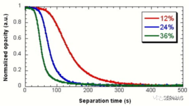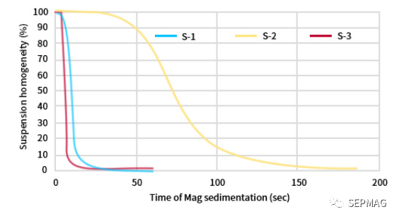 磁微粒化学发光免疫分析是将磁性分离技术、化学发光技术和免疫分析技术三者结合起来的一种新兴分析方法。将悬浮性磁微粒作为载体,以其独特的3D表面和较高的比表面积,为捕获目标分子提供了充分的接触面积和较高的灵敏度。与此同时,磁微粒所具有的超顺磁性可以实现多次磁性分离,有利于加快检测速度以及仪器的全自动化。因此,磁微粒化学免疫分析方法因其独特的优势,目前已被广泛应用于生物医学检测领域。影响体外诊断试剂品质的影响因素颇多,其中非常关键的一项就是原料的筛选。对于磁微粒化学发光免疫诊断试剂,选择正确的生物标志物、涂层表面和磁珠都是非常有必要的。这三个方面通常都需要检查得非常仔细,以探索正确的特性和步骤。而且筛选磁珠是一个漫长而重要的过程,随着行业的发展与市场的需求,国内的化学发光企业急需大量不同规格和功能的磁珠,而这就需要通量高、筛选速度快和成本低的筛选工具。从物理角度来看,选择磁性微粒时首先要考虑的主要参数是粒径的尺寸、悬浮液分散度及磁电荷。其中,粒径大小决定了可用于涂覆配体的表面积以及在分离过程中磁体系统对磁珠的吸引力;磁珠分散体的均匀性直接影响了不同批次产品性能的可重复性;磁性电荷与磁珠的密度和磁珠分离速度息息相关,会直接影响产品的性能和制造过程。值得一提的是,SEPMAG生物磁性分离过程的实时监测为磁珠快速筛查提供了可能性:从基础研究问题到优化方案,从检查新磁性粒子的性能测试到新的涂层方案是否会引起团聚,均可通过参数化生物磁性分离曲线实现,所以,使用SEPMAG系统的学术研究人员称它们为“精密的磁性分离装置”。其生物磁性分离设备还具有高磁场和梯度磁场,这意味着所有磁珠都承受着相同的磁力,并且分离过程是在精确定义的均匀条件下进行的。除此之外,SEPMAG的实时监测功能也不容小觑, QCR监控系统也以监测生物磁性分离为目的,获得不同磁珠分离过程的记录,以便能对结果进行比较。如果磁珠规格(粒径/磁矩)、浓度和缓冲液粘度发生变化,其分离过程的动力学也会有所不同。因为在均匀的生物磁性分离过程中,磁力和磁珠偶联参数是固定的,分离时间仅取决于悬浮液特性,包括:磁珠浓度、磁珠粒径和缓冲液浓度等变化。由图1-3我们可以看出,不同磁珠物理特性不同,其磁珠分离的速度和分离曲线也不同。1、磁性铁含量和磁珠尺寸都会影响磁化后的磁珠迁移速度。如图1所示,使用SEPMAG磁性分离设备监测3种不同磁含量的磁珠,S-1 和 S-3的粒径和磁性铁含量相似,因此在磁化后具有相似的迁移响应时间。但 S-1的铁含量较高,所以其磁沉降时间略快。尽管我们较小尺寸的纳米磁珠(S-2)的磁性铁含量超过 50%,但由于粒径较小(小粒径磁珠的布朗运动更为激烈),对液体环境中的粘度更敏感,所以其迁移速度慢于较大的磁珠。2、另外还值得关注的重要参数是磁珠悬浮液中磁性化合物的含量,又称其为磁荷。磁荷值在10%到60%之间变化,增加该百分比会显著加快磁场影响下的分离速度。图2显示了3种具有不同磁荷和相同平均粒径的磁性悬浮液的分离速度(使用SEPMAG的QCR系统测量)。需要注意的是,磁电荷的增加意味着粒子密度的增加,最高可达1.9 g / cm3。但有时这会成为一个障碍,因为将大微粒与高微粒密度结合在一起会产生很高的沉降速度,并且使磁珠的完全分散变得复杂起来,不建议长时间使用。图2:3种具有不同磁荷和相同平均粒径的磁性悬浮液的分离速度3、磁珠浓度是磁微粒化学发光免疫诊断试剂盒性能的最关键参数之一。如图3所示,SEPMAG 的生物磁性分离监测曲线可以与S型函数成功拟合,通过S形拟合曲线可以轻松比较不同浓度磁珠的分离过程。另外,磁珠是用抗体或其他生物分子进行功能化的,其浓度可以影响特定浓度的生物活性试剂。如果您准备的制剂中磁珠/生物分子的量不正确,则试剂盒的灵敏度会发生很大变化,因此悬浮液的体积控制非常重要。通常实验室过程中体积控制的典型精度约为2%,随着生产过程规模的扩大,体积控制也会变得更为关键。 综上所述,SEPMAG实现了磁珠的快速筛选,不仅将参数与分离设备的变化相关联,而且还建立了理论模型检验实验假设,极大地缩短了研发到生产的时间,为化学发光生产厂家节约了大量的时间和金钱(测试过程中消耗的原材料和人力资源成本)。 |