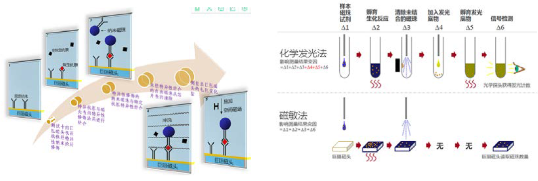 2020年全球体外诊断(IVD)市场规模747亿美元,上游核心原料约占整体市场的10%,其中生物微球等载体系统约占核心原料的25%,2020年全球IVD生物微球市场空间约为18.675亿美元,国内约为17.825亿元。其中免疫诊断市场中的国产化学发光试剂厂家对生物磁珠原料的需求最大,主要是进口为主,少量是自产或者国产。小而美的生物磁珠深刻影响IVD市场尤其免疫诊断市场的走向和发展规模。 磁珠可以与药物、蛋白质、酶、抗体或核酸结合,最开始的磁珠被广泛应用于多种体内实验,比如药物传递、磁共振成像(MRI)造影剂和热疗等。但是因为磁珠材料本身的生物相容性和细胞毒性等等因素,限制了磁珠在体内实验的应用,反而体外实验应用得到更广泛的发展,本文主要综述磁珠在体外实验的用途,尤其应用在临床市场上的各种体外诊断技术,以及学术科研领域生物分子的纯化应用,比如细胞和外泌体分离、核酸提取、生物药物的靶点鉴定及代谢性质研究、蛋白纯化与免疫层析等等。 早在上个世纪70年代初就有科学家尝试使用生物微球来分离细胞,1969年科学家Wigzell和Andersson[1]就开始利用细胞表面抗原和特异性抗体的结合性质原理,使用生物微球分离细胞,所用生物微球没有磁性,分离速度慢,效率很低,且成本高昂。1976年科学家Guesdon和Avrameas[2]研究磁性的生物微球和抗原/抗体的连接反应,并在1977年成功开发磁性固相酶免疫分析技术,为将来使用磁珠来分离细胞以及更广阔的分子生物学研究应用打下基础。所用磁珠为法国Magnogel beads(MG beads),结构为4%的聚丙烯酰胺,4%的琼脂糖和7%包裹在磁珠里面的氧化铁,磁珠表面有醋酸基团,粒径范围为50-160um,属于羧基磁珠。 1978年科学家AntoineJC等[3]首先尝试使用磁性固相酶免疫分析技术来分离小鼠和大鼠淋巴细胞,并获得成功,分离速度快,总回收率在80%-100%之间,所用磁珠同样为法国的MG beads。 1982年科学家Meier和Lagenaur等[4]使用MG beads来分离少突胶质细胞,改善了分离实验方案,提高分离效率,分离后少突胶质细胞的纯度为91.4%,不仅分离速度快,且成本大大降了下来。 生物磁珠技术发展至今,不仅磁珠本身的制造工艺,而且磁珠分离细胞的技术均已经非常成熟,目前大部分磁珠厂家均有能应用于细胞分离的产品,技术成熟且比较知名的厂家有德国Miltenyi,美国Dynabeads,德国MagSERIONbeads,法国Ademtech等,大部分厂家均可以提供已经包被对应细胞表面抗原的抗体磁珠试剂盒,使用过程简单方便,而且主要是3.0um粒径或者更大的磁珠,比如美国Dynabeads主打4.5um。 除了细胞分离,核酸提取也可以通过无磁的生物微球来进行实验,包括琼脂糖和硅胶等,但是效率同样不高,通过磁珠来提取核酸的最佳方法是在磁珠表面接入链霉亲和素,再和生物素化配体结合,通过配体捕捉DNA/RNA。1989年科学家Hultman等[6]首先使用嫁接了链霉亲和素的Dynabeads来提取核酸并测序,所用磁珠为粒径2.8um的Dynabeads。除了链霉亲和素-生物素原理,使用Protein A/G磁珠捕捉抗体-蛋白质-DNA/RNA,也是常用的方法之一。主要的厂家有美国Dynabeads,美国GE,和美国BioVision等。 现在临床检测市场上普遍使用硅基材质的羟基/羧基磁珠来进行核酸提取,方法是磁珠在某种酸碱条件下和溶液中的核酸通过疏水作用、氢键作用和静电作用等发生特异性结合,迅速从生物样品中分离核酸,有利于核酸的自动化和高通量提取。这种针对临床检测市场的核酸提取磁珠技术比较成熟,已经基本实现国产化,操作简单方便。 1990s年代日本科学家Hiroshi Handa等[7]开发FG beads,一种200nm粒径的聚苯乙烯材质的生物磁珠,可以在有机溶剂中和各种小分子或者生物大分子配体进行连接,研究这些配体的结合性质和代谢功能,主要应用于生物医药的靶点蛋白鉴定筛选和作用机理研究。 2006年科学家Hitoshi Uga等[8]用FG beads成功寻找抗癌药MTX的作用靶点并发现其抗癌机理。2010年科学家Takumi Ito等[9]用FG beads寻找镇静剂药物Thalidomide的作用靶点蛋白并弄清楚其作用机理。 这是生物磁珠需求量最高的应用项目,所根据的原理起源于科学家Guesdon和Avrameas在1977年开发的磁性固相酶免疫分析技术,主要用来开发临床体外诊断(IVD)检测技术,通过用磁珠连接特异性抗体来寻找其作用蛋白/抗原并分离纯化,最终检测蛋白/抗原数量,主要的使用技术包括磁微粒化学发光免疫分析技术(CLIA)、微流控磁敏免疫分析技术(MIA)、荧光免疫分析技术(FIA)、单分子免疫检测技术等。 CLIA凭借其灵敏度高、特异性好、自动化程度高等优势,直接检测对象是发光材料的发光性质,最终计算蛋白/抗原数量,在临床应用中迅速推广,已经成为免疫诊断的主导技术,市场占有率超过70%,国内外IVD厂家众多。随着中国社会老龄化的增长,免疫诊断市场不断增长,2019年中国免疫诊断市场规模为278亿元。欧美发达国家免疫诊断中化学发光市场占比超90%,我国目前只有80%左右,且国产化学发光试剂占比不到20%,未来五年发展潜力巨大,有望突破50%。 MIA不同于CLIA,MIA首先需要结合微流控芯片技术,成本较高,采用磁敏传感器技术,用磁珠捕捉待测蛋白抗体并固定在芯片上,直接检测对象是带磁性的磁珠本体数量,具有更高的精度以及更快的检测速度。MIA是对磁信号的检测,可以消除生物样品的干扰,具有超高的灵敏度,并可同时检测多种疾病分子的能力。MIA主要使用200nm的链霉亲和素磁珠,对磁珠的粒径均一性和稳
