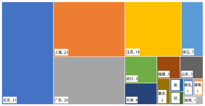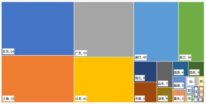 与累积排名相比,新规实施后的地区分布有一些小小的不同。以广东为首的珠三角和江浙沪为首的长三角的发展后劲十足,也显示了这两个区域强大的创新能力。另外一个值得一提的是,北京在新规实施后优势没有以往那么明显,说明“近水楼台先得月”的相对优势逐步减少。