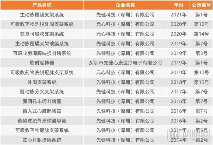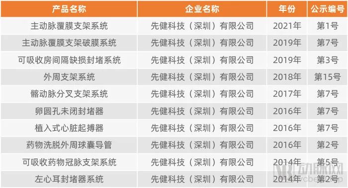 先健科技同样有3家子公司总共有14款创新医疗器械获批。