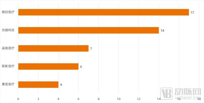 经过重新梳理统计后,获批创新医疗器械前五位的企业分别为微创医疗、先健科技、品驰医疗、联影医疗和景昱医疗。