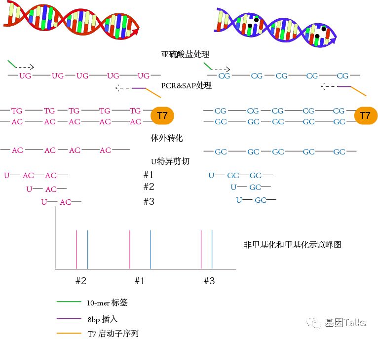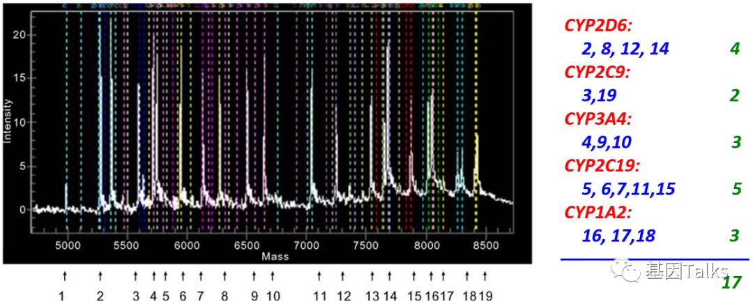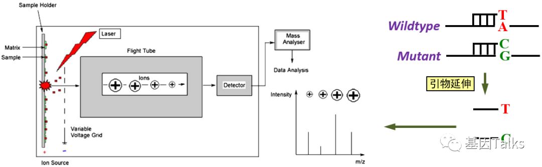 前 言 基因的变异类型有多种(点击查看),对应的分子检测方法亦有多种,当前资本市场驱动着分子检测市场,并极力追捧NGS技术,因为其通量高,灵敏度高且性价比高。小编承认NGS是分子检测的必然发展趋势,但是短时间内,NGS并不会取代其他分子检测方法,因为针对不同的需求,都有对应的理想检测方法,每个检测平台都有着自己的优势,比如: 操作简单:PCR,ARMS-PCR,HRM等 时间快速:ARMS-PCR,HRM等 成本低:PCR,PCR-RFLP,MassARRAY等 准确:Sanger等 通量高:NGS等 灵活性:Pyrosequencing等 结果分析简单:ARMS-PCR等 自动化:核酸提取等 ...... 小编一直认为:没有最好的技术,只有最合适的技术!最好的,不一定是最合适的;最合适的,才是真正最好的。 现在,质谱分析在医学临床诊断和研究方面变得非常普遍,我们可能经常会听到用XX质谱分析在临床检验某种遗传代谢性疾病,提及质谱我们一般都会想到气相色谱质谱联用、串联质谱、遗传代谢病、代谢组学(有机酸、氨基酸、脂肪酸等)等。但是当有一天,我们听到用质谱检测核酸的时候,是不是会有一种错觉?这么“粗糙”的质谱能检测这么“精细”的核酸分子? 对,没错,有一款质谱可以检测核酸分子,它就是基质辅助激光解吸电离飞行时间质谱,MassARRAY-MALDI-TOF-MS! 今天,我们聊一聊MassARRAY技术,首先,我们先了解下什么是MassARRAY? MassARRAY:基质辅助激光解吸电离飞行时间质谱(Matrix assisted laser desorption/ionization time of flight mass spectrometry, MALDI-TOF-MS) ,在基质辅助下使结合后的分子发生电离,产生的离子在电场作用下加速通过飞行管道,它们的质量和所带电荷可以影响其飞行时间,因此,根据它们到达检测器飞行时间的不同对待检测物进行分离。 MassARRAY检测原理 MassARRAY飞行质谱的原理是样品分析物与芯片基质(硅化合物)共价结合形成结晶后在质谱仪的真空腔中经高能激光激发,核酸分子解吸附为单电荷离子;在电场中离子飞行时间与离子的质量成反比相关,通过检测解吸的核酸分子在真空腔中飞行的时间从而计算获得样品分析物的精确分子量,进而得到分析物的基因型信息。该平台使用的是垂直飞行模式。 MassARRAY平台的iPLEX检测基因分型的原理是,对PCR扩增的目标序列,进行MassEXTEND单基因延伸反应,该反应是紧挨着SNP位点设计一段探针,在反应体系中以ddNTP替代dNTP,使得探针在SNP位点处延伸一个碱基即终止,在反应体系根据SNP位点的不同,探针将结合不同的ddNTP,生成不同分子量的产物。延伸的产物与芯片基质结合形成化合物后再通过飞行质谱进行基因型分析。 DNA甲基化检测原理:MassARRAY分子量阵列基因分析系统EpiTYPER DNA甲基化分析技术结合了碱基特异性酶切反应(MassCLEAVE)和MALDI-TOF测序原理。与其他测序方法检测DNA甲基化一样,MassARRAY平台也是应用经过亚硫酸盐处理,DNA中的未甲基化的胞嘧啶(C)转为尿嘧啶(U),而甲基化的胞嘧啶不会发生改变,甲基化的胞嘧啶和未甲基化的胞嘧啶(转变成U)由于分子量不同,因此可以区分。利用5,末端带有T7启动子的引物进行PCR扩增,产物经虾碱性磷酸酶(SAP)处理后,转录并进行碱基特异性的酶切反应(MassCLEAVE),最终生成不同分子量的检测产物(图3)。酶切后DNA片段的大小和分子量取决于亚硫酸盐处理后碱基的变化。 实验流程简单解析 2,通过PCR引物扩增后,可以进行目的片段的富集。 3,PCR扩增后,我们需要进行SAP消化,去除多余的酶、buffer、mg2+、dNTP等试剂。 4,杂交延伸扩增。 5,单碱基延伸扩增(以A/T/C/G终止)。最后我们通过质谱检测单碱基的峰图便可以直观的读出结果。 由于MassARRAY技术细节比较多,本篇篇幅可能不够介绍,感兴趣想深入学习的小伙伴可以点击下方的链接进行查看: 4,MassARRAY平台项目设计 。 实例1:比如现在有一名结直肠癌患者,考虑是否使用西妥昔单抗,对KRAS 61号突变进行检测。 KRAS T/T野生型 KRAS G/T突变型 实例2:MassARRAY最大的优势就是其通量高,一管可以实现多个基因位点的检测,比如下图中17种基因型可以一次性检测(有些基因型不是对应一个SNP位点,所以左图下角有19个峰值)。 一管可以一次性检测多种基因型 优点: 1,通量高; 2,成本低; 3,组合灵活; 4,灵敏度高。 缺点: 1,需要特殊的仪器设备; 2,不能检测未知的突变; 3,每次检测样本和位点数有一定要求。 此方法适宜于有相关仪器的实验室,大量样本同时进行多位点分型检测。 |
