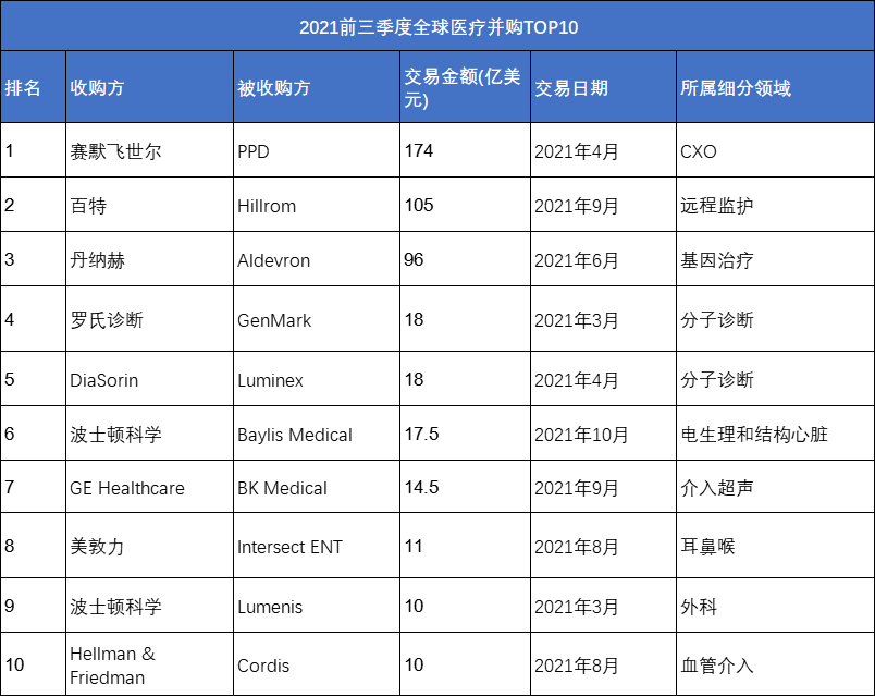 截止目前,2021器械领域并购标的前十,