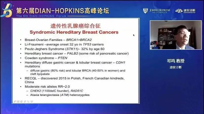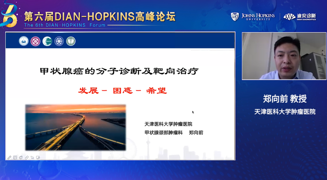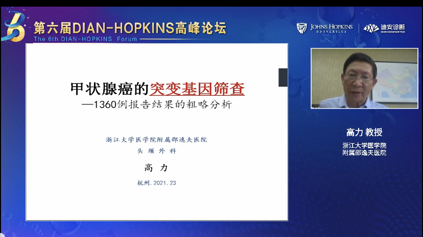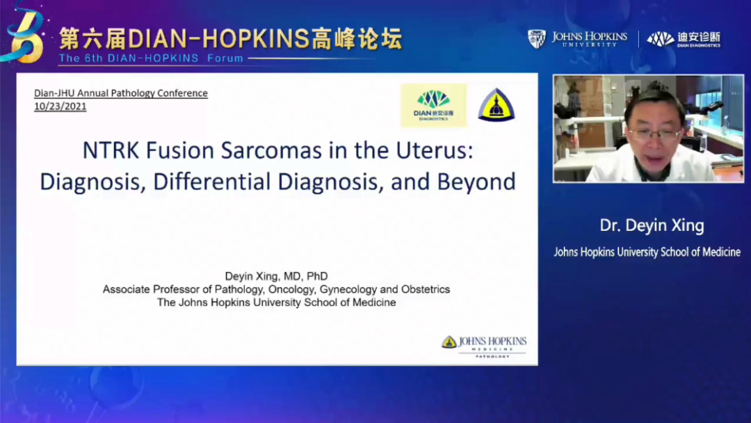 10月23日,由迪安诊断与约翰·霍普金斯大学医学院共同主办的第六届“DIAN-HOPKINS高峰论坛”以全球网络直播形式在线举办。 本次大会重点围绕妇科肿瘤、乳腺癌、甲状腺癌的精准诊疗新进展,携手20余位国内外医学专家从病理诊断、分子诊断、遗传筛查、精准诊疗新进展及临床诊疗等方面共同探讨精准诊疗前行方向,吸引了近万人观看。 本次大会主席北京医院刘东戈教授、约翰·霍普金斯大学医学院Ralph Hruban教授、马里兰大学医学院李玲教授以及特邀嘉宾迪安诊断董事长陈海斌先生分别作开场致辞。 北京医院刘东戈教授祝贺第六届“DIAN-HOPKINS高峰论坛”的开幕,肯定了历届“DIAN-HOPKINS高峰论坛”对于推动肿瘤病理和临床诊疗的发展所做出的贡献。他表示,每届论坛都为国内外的医学专家提供了交流和学习的平台,并期待迪安诊断能够为临床病理做出更大的贡献。 约翰·霍普金斯大学医学院Ralph Hruban教授介绍了约翰·霍普金斯医院病理部门的工作重点,表示病理学科是连接基础和应用研究的桥梁,而霍普金斯医院病理技术在全球保持领先水平,在很多领域有着丰富的研究成果。他还表示,霍普金斯医院和中国有着深厚的友谊,早在1915年就曾派出医生来华参加工作;现在,霍普金斯也聚焦于为中国肿瘤患者提供远程病理诊断服务。 马里兰大学医学院李玲教授肯定了迪安诊断在病理诊断领域做出贡献。李教授表示,很高兴看到“DIAN-HOPKINS高峰论坛”已成为病理学家和临床学家的学术盛宴。她也表达了由于疫情无法线下参会的遗憾,表示对本届大会内容充满期待。 迪安诊断董事长陈海斌先生作为特邀嘉宾作开场致辞。他首先感谢了各位专家的参与和对迪安的支持。在讲述高峰论坛历史与合作情况时,他表示,迪安诊断与约翰•霍普金斯大学医学院多年的合作,为公司的高起点发展打下了坚实的基础。 陈海斌先生表示,今年是公司创业第25周年,“让国人平等地分享健康”是迪安诊断的使命所在。迪安诊断在肿瘤分子诊断领域的布局非常早,目前已经实现基于多个平台的数百个项目的开展。他希望本次大会能够成为各位专家畅所欲言的平台,并祝贺大会圆满成功。 分论坛1 妇科肿瘤诊疗新进展 该分论坛由北京医院刘东戈教授担任主席,复旦大学附属肿瘤医院居杏珠教授和迪安诊断许励教授担任主持。刘东戈教授作开场致辞后,多位讲者专家围绕妇科肿瘤诊疗新进展发表了演讲。 刘东戈教授进行分论坛开场致词 许励教授担任分论坛主持专家 居杏珠教授担任分论坛主持专家 约翰.霍普金斯医学院Qing Kay Li教授分享的《妇科肿瘤细胞病理学研究进展》详细阐述了宫颈肿瘤的细胞学诊断,讲述了日常实践中宫颈细胞学诊断的挑战,强调了病理学家和临床医生合作的重要性。 约翰.霍普金斯医学院Deyin Xing教授分享了主题为《子宫NTRK融合肉瘤的诊断及鉴别诊断分享》的演讲,分别介绍了形态学、免疫组织化学、细胞遗传学和分子诊断、靶向治疗以及鉴别诊断在子宫NTRK融合肉瘤上的应用。 约翰.霍普金斯医学院Ming-Tseh Lin教授分享了主题为《卵巢癌及子宫内膜的分子诊断》的演讲,分别介绍了卵巢癌、子宫内膜癌以及葡萄胎的分子诊断技术和内容。 华中科技大学同济医学院附属同济医院高庆蕾教授分享了主题为《子宫内膜癌分子分型检测的临床应用》的演讲,介绍了子宫内膜癌用于分子分型的基因及其临床检测方法,不同分子分型子宫内膜癌临床意义,并强调了分子分型对于子宫内膜癌后续临床治疗策略的重要性。 行动基因的陈淑贞博士分享了主题为《HRD检测研发历程及其在卵巢癌中的应用》的演讲,介绍了HRD的临床意义以及HRD检测的研发历程,对比不同方法检测HRD性能差异,并展示了所研发的HRD算法的临床性能验证数据。 分论坛2 乳腺癌诊疗新进展 中国科学院大学附属肿瘤医院王晓稼教授和迪安诊断祁鸣教授为该分论坛主席。两位主席分别开场致辞后,多位讲者专家围绕乳腺癌诊疗新进展发表了演讲。 王晓稼教授进行分论坛开幕致辞 上海交通大学附属第一人民医院朱丽教授分享了主题为《聚焦精准,探索乳腺癌诊疗新趋势》的演讲,介绍了乳腺癌的发生分子机制。她也强调了乳腺癌分型的重要性,分享了对于不同分型乳腺癌治疗的一些新进展和新的潜在靶点。 上海长海医院盛湲教授分享了主题为《癌症基因组测序(CGP)探索晚期乳腺癌精准治疗新模式》的演讲,介绍了乳腺癌精准治疗的一些技术平台。他比较了各个技术平台的优劣,同时特别介绍了基于NGS技术平台的癌症基因组测序(CGP)能够检测肿瘤患者的多个基因组变异,为不同分型的乳腺癌患者提供精确的分子分型,从而指导临床对于初诊或耐药后的晚期乳腺癌进行精准治疗。 浙江大学医学院附属邵逸夫医院王娴教授分享了主题为《三阴性乳腺癌临床实践探索》的演讲,介绍了三阴性乳腺癌的临床特点,指出三阴性乳腺癌是一种预后极差的癌症类型。她基于目前基因检测对于TNBC的分子分型带来了一些新进展,也介绍了三阴性乳腺癌目前包括免疫治疗等临床治疗的新进展。 迪安诊断祁鸣教授分享了主题为《遗传性乳腺癌的全程管理分享》的演讲,介绍了遗传性乳腺癌的不同致病性基因和临床特征,指出乳腺癌患者中很大一部分比例是遗传性乳腺癌。祁教授还介绍了基于不同类型的肿瘤遗