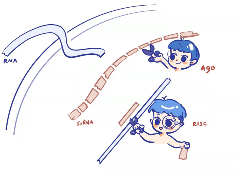 HCare, We Care. 欢迎来到「HCare」专栏,在这里,我们聚焦前沿科技,突破创新。我们将和你分享细胞疗法、基因编辑、分子诊断、AI制药、手术机器人 、AI影像等听起来遥远又实际上离我们很近的技术,你将看到我们对创新的狂热,对世界的好奇和对科学的敬畏。 「HCare」 Vol.13,我们了解下核酸是如何通过调控基因的表达来治疗疾病的。 核酸是生命信息的重要载体,它存储的信息决定了我们是什么、长什么样。即使是最小的病毒,决定它性状的生命信息也都是由核酸存储的。 因为疫情而被我们熟悉的核酸检测,也是像扫描指纹或者面部识别一样检测病毒的特征序列,从而判断病毒是否存在于我们采集的样本中。只有一个例外——朊病毒,这种病毒仅由蛋白构成。 基因到表征的过程像是在餐厅用餐,侍者mRNA聚合酶将菜单上的信息转录到mRNA这个便利贴后交给后厨核糖体烹调出蛋白,最后成为具有功能的分子。依凭这个关系,我们研发出了核酸药物,直接向细胞递送所需要合成蛋白的核酸信息,剩下的交由细胞自动完成,mRNA疫苗利用的也是这样的原理。(RNA疗法离我们有多远?|HCare ) 和餐厅经营一样,基因表达的过程实际上复杂得多。 餐厅受时令的影响不会在禁渔期提供牡蛎,细胞也会因为其所需的功能过表达或沉默某些基因,这在基因中能够通过表观遗传修饰来给菜单上添加标记;客人可能点了菜之后对菜品提出要求,例如不放香菜,这样就需要将传菜单上的信息在交给大厨前注明好,这个将pre-mRNA(刚通过转录产生的mRNA,像是草稿一样需要编辑与整理)编辑至成熟mRNA的过程包含了基因的可变剪切;抄写好的mRNA也会因为客人突然反悔不再需要,因此需要立即对mRNA进行注释后销毁,避免浪费,这个过程则涉及RNA干扰(RNAi)。 决定生物性状的,不仅是基因编码了什么,还取决于基因是如何被表达的。一些疾病的本身也正是基因表达的紊乱,例如大部分的癌症都表现了抑癌基因的抑制和原癌基因的过度表达。 在这种情况下,我们并不需要使用某些化学药物或者蛋白直接参与到复杂的代谢当中,也不必递送大核酸生成新的蛋白,或是冒着错误的风险直接进行基因编辑。我们只需要简单的对现有的基因表达状况进行调整:刺激或抑制某些基因的表达即可。 小核酸包括小干扰核酸(siRNA)、反义寡核苷酸(ASO)、微小RNA(miRNA)和核酸适配体(Aptamer)的核苷酸分子。相比于动辄上百上千个碱基(nt)的mRNA,这些小分子的大小通常不会超过30nt。小核酸虽然小,但是在细胞活动调控中能够起到重要的作用,这一特性也使得其更加容易设计、生产与递送而作为药物应用到临床中。 无论是DNA或是RNA,都是由一个个核苷酸组成的核酸链。除了与临近的核苷酸反应结合以外,在核酸链上的核苷酸还能与特定的另一种核苷酸共价结合配对。这样的两两配对规则使得核酸链存在“正向”与“反向”的区别。 核酸序列也就像姓名一样,姓和名在一起就是一个准确的人,例如“韩梅梅”。韩梅梅也在英语世界里也可以是“梅梅韩”,虽然是同样的一个人,当我们听到“梅梅韩”的时候会感到陌生。 基因的读取也是一样的,虽然染色体DNA在生物体内是以双链的形式存在的,但是在转录的时候存在着一定的方向偏好,系统只会理解其中一种表达,就像韩梅梅在中国和梅梅韩在美国一样。而另外一条链通常不会被转录为mRNA,因为这一条链不仅不会被翻译系统识别,而且还会和正确的mRNA互补配对形成双链结构,阻止mRNA被翻译。 这给了科学家一个抑制基因表达的思路:如果我们不希望一种基因表达,往细胞递送与目标mRNA互补的RNA就可以导至mRNA的翻译受阻,从而阻止目的基因的表达。 反义寡核苷酸(antisense oligonucleotide, ASO)就是与目标RNA或DNA具有互补序列的RNA分子。利用固相亚磷酰胺法人工合成的反义寡核苷酸在递送进细胞后,会和细胞质内的mRNA结合阻止mRNA被核糖体识别,或是直接与展开为单链的DNA结合阻止DNA的转录。 小型干扰核酸(small-interfering RNA, siRNA)是一种双链非编码RNA分子,分子大小通常在20至24nt之间,并带有羟基化的3‘端和磷酸化的5’端。当siRNA进入细胞质之后,将会招募其它蛋白组成RNA介导的沉默复合体(RISC),并开始在细胞质中搜寻与siRNA互补配对的mRNA。当靶向mRNA被捕获后,沉默复合体会与之互补配对结合,再降解mRNA。这一过程就像是一支箭射中了传递情报的鸽子,信使消失之后信息自然无法传达。 与RNA干扰(RNAi)相对应的是RNA激活(RNA activation),他们同样是通过一个小核酸招募蛋白来对靶向基因的表达进行调控。不同之处在于,RNAa靶向的是基因的非编码区域,其中包括基因的启动子(使得RNA开始转录的区域)。基因的启动子像是一个电门,当基因有表达需要的时候会踩上一脚,RNA聚合酶就会启动并开始转录对应的mRNA。而saRNA(小激活RNA)就像是在这个电门上放的一块砖头,基因就会因为持续信号的刺激而持续转录,从而持久的激活基因表达。而siRNA则是在刹车上放着的砖头,持续抑制基因表达。 微小RNA(micro RNA, miRNA)和siRNA非常相似,也是一系列具有基因转录调控作用的19-25nt大小非编码RNA。miRNA是在细胞核内由一个较长的单链pri-miRNA经过Drosha酶加工,然后转运到细胞质并经过Dicer剪切酶剪切后形成一个成熟的发卡状RNA。miRNA成熟之后同样会和蛋白结合形成miRISC复合体,对匹配的mRNA进行翻译抑制或者降解。miRNA的调控并不
