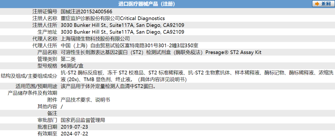 Critical Diagnostics公司目前已持有数项已在美国、中国等国发布的专利,以及其他正在申请的专利。 ▲公司官网: http://www.criticaldiagnostics.com/OUS/index.htm CDD官网 ST产品介绍 ▲PRESAGE® 检测 ▲ASPECT–LF™ ST2 测试 ▲ASPECT-PLUS™ ST2 测试 目前国内获得CCD公司授权的主要公司 上海瑞缔生物科技股份有限公司 (CCD产品的经销商) 北京利德曼生化股份有限公司 创始于1997年11月,于 2012年2月16日成功在深圳证券交易所创业板上市,股票代码:300289,公司总部位于北京经济技术开发区。 ▲利德曼官网: http://www.leadmanbio.com/html/about/ard1/ 巴迪泰(广西)生物科技有限公司 成立于2016年7月,是一家集研发、生产、销售为一体的体外诊断企业。作为韩国巴迪泰的控股子公司,公司的研发生产与韩国巴迪泰一脉相承,采用韩国先进技术及进口原料,创立了自己的国产品牌“艾美益”,并结合中国市场情况不断取得创新,开发出多款契合市场需求的免疫荧光分析仪。目前已注册、生产多款免疫荧光分析仪以及数十种配套的检测试剂盒,覆盖了心血管类、感染类、甲状腺、性激素、糖尿病等多个领域,可以为广大客户提供众多优质的POCT解决方案! ▲巴迪泰官网: http://boditechgx.com 从技术角度来说,CCD公司基于酶联免疫法的产品已不能满足临床快速检测的需要,但面对庞大的心衰检测市场,国内主动获取授权的厂家也不多,未来ST2检测市场的发展还有待探索,目前市场上主流的进口检测品牌,还并未有主动进入这个检测市场,或许正是因为少了这些主流品牌的推动,所以ST2未来花落谁家或许还值得期待一下! |