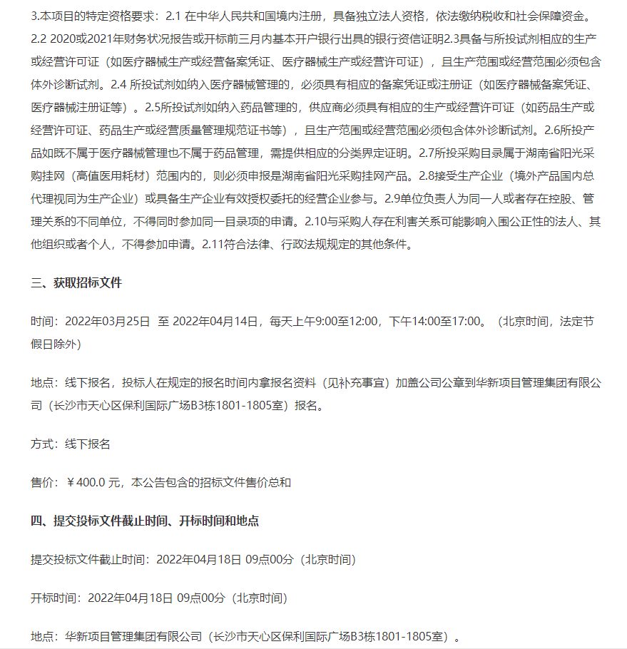 3月25日,与北京协和医院有着“南湘雅,北协和”之称的中南大学湘雅医院在其官网上公布《中南大学湘雅医院麻醉科、检验科一批试剂公开遴选项目公开招标公告》。 以往一些香饽饽项目,已经被医院限制到收费的2折左右竞标。 南湘雅 例如: 国产肌钙蛋白,湖南省三级医院收费高达160元/人次,医院限价28元/人份,连2折都不到。 癌胚抗原,甲胎蛋白等常规肿瘤标志物,收费60元/人次,医院限价12元/人份,恰好2折。 血气测定试剂盒,要求进口产品,限价25元/人份,这个价格我们怀疑厂家出厂价是否能达到? 而以上价格仅仅是竞标上限,实际最终的中标价预计还要下浮10-20%。 除此之外,由于医院为德荣医疗集团做的SPD,需要向其缴纳大约1%管理费。 再扣除部分产品冷链成本,税务成本,资金成本等,经销商利润实在是太薄。 无论是IVD项目的医院收费还是采购成本,国家都在不断做出宏观调控,尤其是中间流通环节产生的成本。从本月全国各省一轮又一轮的新冠抗原检测招标和限价政策可见一斑。 行业在不断变化,作为经销商,只有顺应大趋势而改变,才能找到新出路,得以发展创新。 那个躺着赚钱的时代已经过去,未来经销商拼的是实力,无论你是直销或是分销,一定要提升综合服务能力,做好转型升级的准备。 附湘雅医院招标公告 |