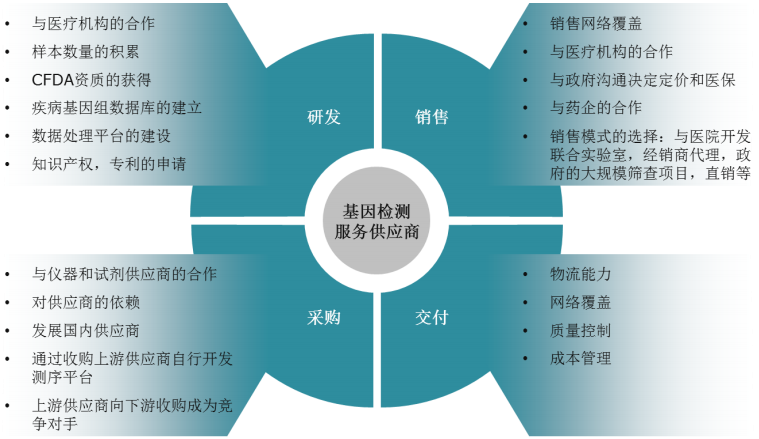 基因组学是未来最被看好的领域之一,比尔·盖茨说,”下一个超越他的富豪将来自基因领域“。2014年7月,麦肯锡发布报告称,除移动互联网、物联网以及云储备外。在生物领域,下一代基因组学上榜是未来10年10大热门发展领域之一,未来的10年,该 领域的潜在能量大致为0.7万亿至1.6万亿美元之间。而当前全球基因组学市场为110亿美元左右。基因组学在农业、畜牧业、祖先起源、法医取证、生物能源、药物等领域均有广泛应用。 探索基因测序行业的产业链和商业模式显得非常有必要了。本文为大家梳理一下当前基因测序行业的产业链和商业模式。 基因测序产业链 基因测序产业链,上游为测序仪器和试剂供应商,中间为基因检测服务提供商,下游对象为医院,药企,科研机构和病人本身。目前测序仪和核心试剂相关技术为外企垄断,国内企业多为检测服务提供商。 上下游供应商的关系:国内基因检测服务提供商普遍存在的问题是对上游仪器和试剂供应商依赖严重,绝大部分国内公司不具备自行研发测序仪和核心试剂的能力,因此能否与上游供应商形成长期稳定的共盈关系变得非常重要。境外市场,Illumina 和 Life Tech 两家仪器供应商已开始通过并购等方式向下游延伸,与下游服务型企业形成直接竞争;境内市场目前暂无这类动向,考虑到外资企业在服务领域并不具备优势,短期内国内基因检测公司仍可与外资仪器供应商共赢。值得注意的是,华大基因于 2012 年收购了 Complete Genomics,后者为一家基因测序仪开发公司,望借此逐步摆脱对 Illumina 的依赖。 临床检测资质的获取:CFDA年初叫停基因检测的临床应用随后打开试点申报标志着行业开始进入规范化,在技术平台和需求都已具备在的情况下,能否尽早拿到资质成为能否领跑国内测序服务行业的关键之一。6月30日,CFDA以罕见的速度报批了华大基因的测序仪和试剂盒。 疾病基因组数据库的建立:对于测序服务类企业来说,测序结果的解读是业务流程中最大的壁垒,数据解读的准确度和样本量直接相关,是否拥有企业自身的疾病基因组数据库,能否积累足够的样本量,构建自己的 IT 平台提高解读准确度是拉开测序服务企业差距的关键之一。 销售模式:1)医院的覆盖:基因测序服务和临床关系紧密,如产前筛查,癌症筛查,叫停前国内公司样本来源主要由医院相应科室提供,相应的专科医院更被称为“兵家必争之地”;2)伴侣检测方面,药企靶向药和检测公司伴侣检测合作推广的模式在国外已有先例。对于国内企业来说,构建与医院,体检公司,独立实验室,药企等的合作关系是抢占市场份额的核心;3)与医院开发联合实验室,4)经销商代理;5)政府的大规模筛查项目或医保。 基因测序的商业模式 研发 与医疗机构的合作 样本数量的积累 CFDA资质的获得 疾病基因组数据库的建立 数据处理平台的建设 知识产权,专利的申请 采购 基因检测客户终端分析 与仪器和试剂供应商的合作:贝瑞和康同illumina的合作 对供应上的依赖:目前国内大多数测序服务公司的现状 发展国内供应商:紫鑫药业自主研发的测序仪 通过收购上游供应商自行开发测序平台:华大基因收购CG 上游供应商向下游收购成为竞争者:illumina公司收购一家专注于伴随诊断及其他IVD的咨询Myraqa公司。 交付能力 物流能力:通常与目前的物流水平一致,在这方面测序服务公司之间几乎没有差距。 网络覆盖:网络覆盖在这方面足以显示公司的实力,像华大基因、贝瑞和康等测序公司与全国很多地方的医院有合作。它们或者是通过医院来采血,或者是在医院设点采血进行初步的预处理。同医院的收入比例分成,以及地方政策在很大程度上决定网络覆盖,另外提供优质的服务也很重要。 质量控制:目前测序的公司,在这方面的能力基本上都没有问题,就看哪家公司在细节方面做得好了。 成本控制:关于成本控制,这可能与测序仪,耗材进口有关,也与大规模的测序有关。 销售模式 1)医院的覆盖:基因测序服务和临床关系紧密,如产前筛查,癌症筛查,叫停前国内公司样本来源主要由医院相应科室提供,相应的专科医院更被称为“兵家必争之地”; 2)伴侣检测方面,药企靶向药和检测公司伴侣检测合作推广的模式在国外已有先例。对于国内企业来说,构建与医院,体检公司,独立实验室,药企等的合作关系是抢占市场份额的核心; 3)与医院开发联合实验室; 4)经销商代理; 5)政府的大规模筛查项目或医保。 注:本文部分内容来自东方证券 |