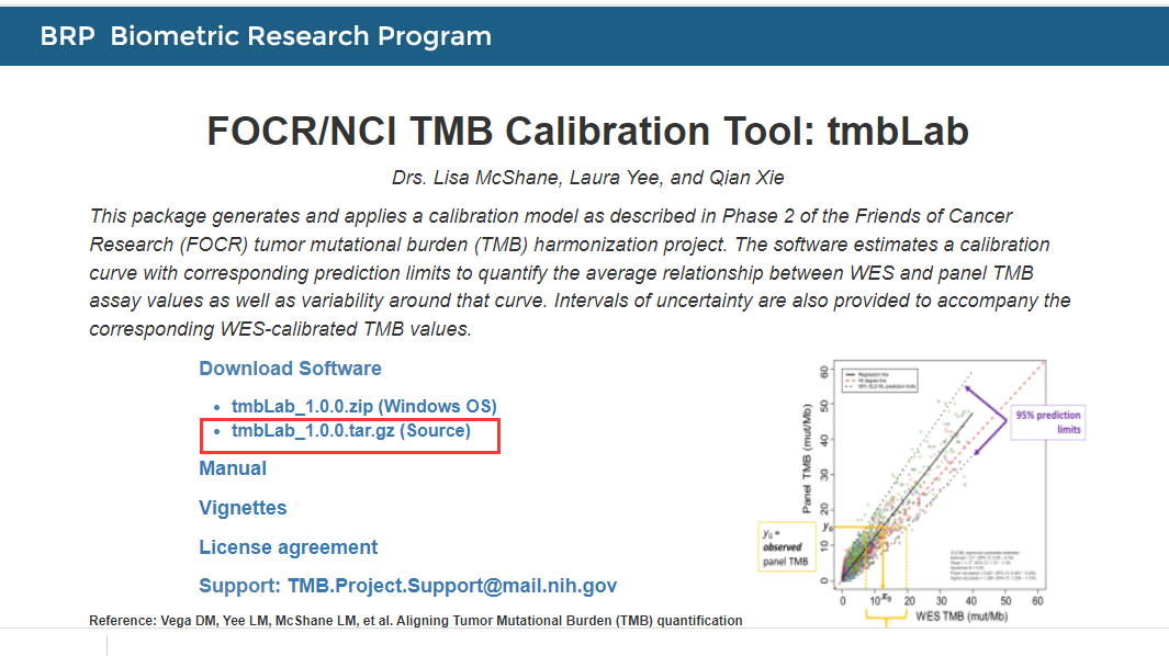 为何需要把panel的TMB转换成WES水平的TMB,比较实用的一点是目前TMB国家参考品还是NCCL TMB室间质评都要求各厂家先把panel的TMB的转换成WES TMB,因为参考的答案都是WES TMB。因此,在此不再强调其重要性和意义。小编总结了2个可以参考的方法,当然各位可以根据自己的数据情况,制定更好的方案。 Panel和WES的一致性评估采用简单线性回归。 首先,获取WES TMB(y)和panel TMB (x) 之间的线性回归曲线y=a+bx和决定系数,该步由R函数lm(http://www.endmemo.com/program/R/lm.php) 实现: lm(y~x, data=your_data)。 在选定的显著性水平(参考品设定为0.1)下,该线性回归曲线的预测区间计算可由R函数predict实现: predict(your_linear_model,interval=’predict’,level=1-alpha)。 若有另外的 panel TMB 数值需计算预测区间,可同样由R 函数predict实现: predict(your_linear_model,newdata=your_panel_tmb,interval=’predict’, level=1-alpha)。 Friends of Cancer Research(FOCR)的precisionFDA组织的TMB lab的Phase2阶段(https://precision.fda.gov/challenges/18)完成的软件tmbLab,此软件只需要用户提供构建模型用的数据和想预测WES TMB的新的Panel TMB数据就可以计算出对应的WES TMB和指定的预测区间。 2.1下载地址 https://brb.nci.nih.gov/tmbLab/ 图1:红框处为适用于linux系统的软件安装包 2.2安装 以linux系统上安装为例,选择图1中红框里的安装包进行下载后,使用R语言进行源码安装,脚本如下所示: install.packages("tmbLab_1.0.0.tar.gz", repos = NULL, type="source") 2.3 软件使用 2.3.1 输入文件Model.WES.Panel.TMB.txt的准备 按照下表1准备构建gls线性回归模型使用的输入文件,Sample.ID为样本编号,Uniform.WES.TMB为该样本的WES TMB,Panel.1为该样本的Panel TMB。 表1:构建gls线性回归模型使用的输入文件格式要求 2.3.2 输入文件NewSample.Panel.TMB.txt的准备 按照下表2准备新的Panel TMB的输入文件,Sample.ID为样本编号,Panel.TMB为该样本的 Panel TMB。 2.3.3 使用下面函数进行转换 说明:Calib.Interval参数为用户可以指定的预测区间,默认值为95%的预测区间,如果想计算90%,则设置为90即可。 2.4软件算法原理 我们检测到的TMB数值,其数值越大数据就越离散,即变异会越大。为了防止我们的模型过拟合,tmbLab软件采用gls线性回归模型,即线性回归系数的广义最小二乘(gls)估计。各TMB数值对模型的贡献取决于产生该数据的分布的变异,变异越大其权重就越小,因此此模型解决了过拟合的问题,从而增强其预测的准确性。 在使用上述2种方法时,小编在此特别强调我们计算的是预测区间,不是置信区间。置信区间(confidence interval estimate)是利用估计的回归方程,对于自变量 x 的一个给定值 x0 ,求出因变量 y 的平均值的估计区间。预测区间(prediction interval estimate)是利用估计的回归方程,对于自变量 x 的一个给定值 x0 ,求出因变量 y 的一个个别值的估计区间。预测区间的范围总是要比置信区间的范围要大的。 |