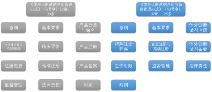 图1|新旧体外诊断试剂注册管理办法框架对比