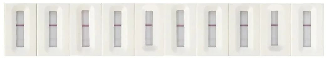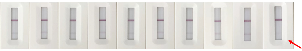 胶体金检测试剂 胶体金检测试剂作为体外诊断试剂的一个重要组成部分,具有成本低廉以及快速便捷等特点,广泛应用于临床检测、食品安全检测、环境监测、农业和畜牧业以及毒品检测等领域。然而,胶体金试纸条也存在一些固有的局限和不足,如变异系数(Coefficient of Variation, CV)较大(约为10%~20%)、线性范围窄和灵敏度低等。 如何控制胶体金纸条的CV是胶体金试剂领域的老生常谈了,也是长期困扰研发和生产控制的一个话题。本文中,笔者将结合自己的研发经验,从胶体金颗粒的均一性和结合垫的处理工艺这两点出发,来跟大家聊聊胶体金试纸条CV的控制。 胶体金颗粒的均一性 在胶体金试纸条中,胶体金作为标记抗体的显色载体,是制备胶体金试纸条的一个关键工艺点。由于胶体金的颜色和其粒径大小相关,因此胶体金颗粒的粒径大小及颗粒的均一度能够直接影响胶体金试纸条的分析性能参数,如重复性和批间差等。 金颗粒的常用制备工艺为柠檬酸三钠还原氯金酸,根据柠檬酸三钠和氯金酸的不同质量比对纳米金颗粒的粒径进行控制,一般可以形成20~150nm的胶体金颗粒。在纳米金颗粒的形成过程中,反应体积、搅拌速度、反应温度、搅拌器类别、氯金酸终浓度以及柠檬酸三钠和氯金酸的添加顺序和添加方式均可对胶体金的粒径均一度产生影响。因此,胶体金制备完成后需经过质量检定后才能应用于后续工艺。通常选用透射电镜和可见光比色法进行质量检定。但是,透射电镜方法虽然直观可靠,但是由于其设备昂贵,且测定费时且费用较高,不便于研发实验室和生产的日常应用,因此可采用可见光比色法进行胶体金颗粒的质量检定。 我们以柠檬酸三钠的不同加入方式为例,观察其对胶体金粒径均一性的影响。对胶体金溶液进行400nm~750nm范围的吸收光谱扫描,如图1可见光吸收光谱所示,若主峰宽度越小,颗粒越均匀,反之,主峰宽度越大,颗粒越不均匀。图中蓝色吸收峰为:在250mL反应体系中,先加入氯金酸(使其终浓度为0.01g/100mL),待溶液即将沸腾时加入终浓度为0.01g/100mL的柠檬酸三钠溶液(柠檬酸三钠储液浓度为1g/100mL,添加体积为2.5mL);图中绿色吸收峰为:在250 mL反应体系中,先加入氯金酸(使其终浓度为0.01g/100mL),待溶液即将沸腾时加入终浓度为0.01g/100mL的柠檬酸三钠溶液(柠檬酸三钠储液浓度为5g/100mL,添加体积为0.5mL);两条吸收峰的区别仅为柠檬酸三钠的加入体积有所差别,绿色吸收峰其主峰宽度小于蓝色吸收峰,说明绿色吸收峰比蓝色吸收峰的粒径更加集中和均一,提示在绿色吸收峰的胶体金制备过程中,加入高浓度、小体积的柠檬酸三钠,能够使柠檬酸三钠以更加快速、均一的方式参与到氯金酸的还原反应中。两种不同添加方式产生的胶体金粒径也稍有差别,绿色和蓝色的最大吸收峰分别为527.86和528.80,根据彭健淳[1]等人的公式计算,两者的粒径分别为31和33nm。 以上是在250mL的较小反应体系中进行的试验,如果应用在企业生产中,在制备5L或10L的胶体金溶液时,不同的添加方式所产生的吸收峰差异可能会更加显著。因此,研发人员在胶体金的制备工艺中,可从柠檬酸三钠和氯金酸的添加顺序及添加方式、反应温度、搅拌速度、搅拌器类别等方面进行优化,从而制备粒径更加均一的胶体金溶液。 图1 柠檬酸三钠的不同加入方式对胶体金颗粒均一性的影响 绿色吸收峰为柠檬酸三钠储液浓度为5g/100mL,添加体积为0.5mL 蓝色吸收峰为柠檬酸三钠储液浓度为1g/100mL,添加体积为2.5mL 结合垫的处理工艺 胶体金试纸条基于侧向流层析原理,样本加入到试纸条远端的样品垫上,通过毛细作用侧向移动,在结合垫上与胶体金标记抗体或抗原发生特异的反应。结合垫是承载胶体金-抗体复合物的薄膜介质,一般材质为玻璃纤维素或聚酯纤维,可选择性的对其进行预处理或不处理。预处理工艺包括浸泡或喷涂等,即用含有缓冲盐(Tris,PBS等)、大分子聚合物(聚乙二醇-4000,聚乙烯吡咯烷酮(PVP)等)、惰性蛋白(牛血清白蛋白,卵清蛋白,酪蛋白等)、蛋白保护剂(海藻糖,蔗糖等)、表面活性剂(Tween-20,Triton X-100等)等成分的溶液对膜材进行浸泡或喷涂,并进行干燥。 膜材的选择、膜材是否需要预处理、预处理缓冲液的组分、膜材预处理液的喷涂工艺方法、以及膜材预处理的干燥工艺方法均是影响CV的因素。这个议题复杂且庞大,本文我们仅选用膜材预处理液的两种不同预处理方法略展开讨论,其他有关CV影响因素的讨论我们将在后续推文中持续更新。 预处理的目的是封闭膜材本身的蛋白结合位点并提供胶体金-抗体复合物的附着骨架,使喷涂于膜材的胶体金-抗体复合物在样本流过时,能够迅速地被溶解并从膜材释放以顺利进行侧向流层析和免疫反应。预处理膜材看似是一个简单的工艺步骤,但是却引入了不均一的可能,并有可能增加试剂条的CV。 基于玻璃纤维素膜,笔者分别采用浸泡和自动喷膜仪喷涂两种预处理方法进行了如下试验: 01 浸泡法 向预处理液中添加了少许色素(色素仅在此起直观的展示作用,研发生产中不添加),按照浸泡的工艺将整张膜材浸入预处理液中充分润湿,再将膜材放入37℃烘箱干燥16h。如图2所示,色素指示剂提示膜材上的溶液在干燥过程中发生了很明显的边缘效应(红框标识),提示该区域预处理液中成分浓度高于其他部位。同时,由于浸泡法是过饱和原则,预处理体积大于膜材