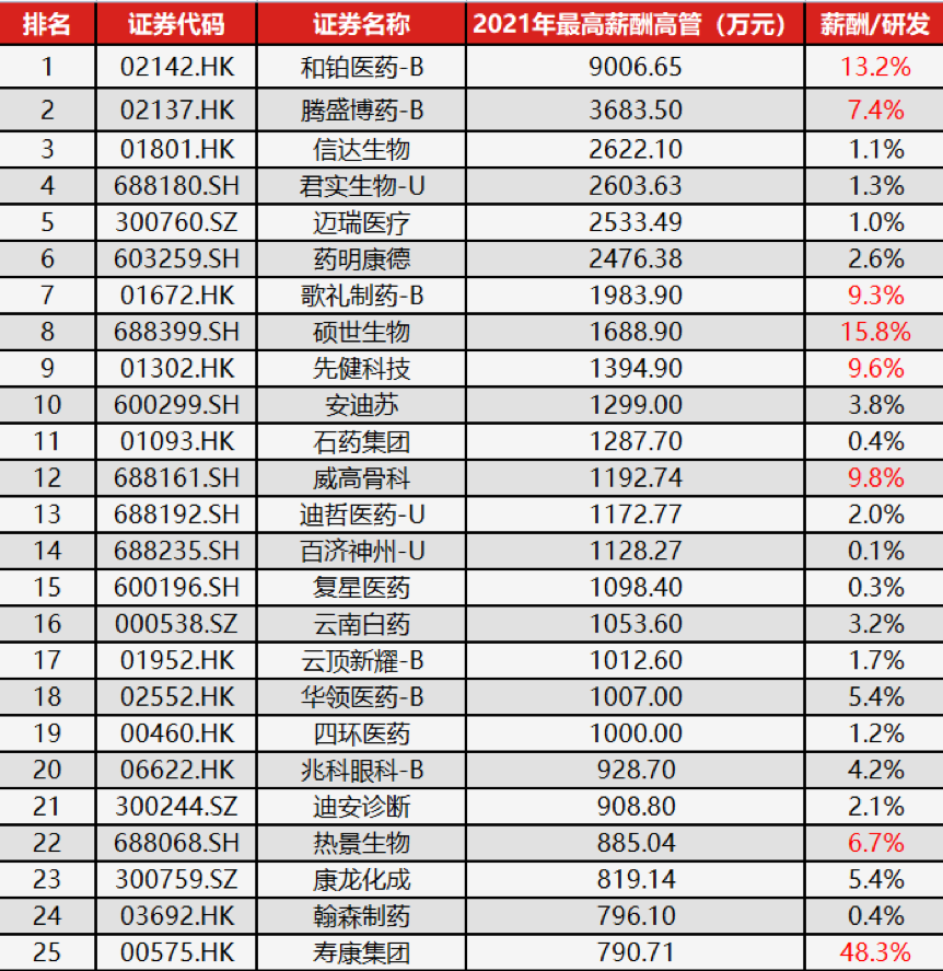 美国涨薪幅度增大,平均年薪近14万美元,灵活办公更普遍5月11日,生物制药新闻和职业领域的领导者BioSpace发布了2022年美国生命科学薪资报告。报告显示,与前几年相比,工资增长速度加快。总的来说,大健康行业人员的工资增长了8%。 2022年全职员工的平均年薪为138557美元,高于2021年的128689美元。 2019年、2020年和2021年的年薪增长率平均只有6%。2022年更多受访者表示增长幅度更大,6-10%的增长幅度变得更加普遍。100%更换雇主的受访者表示加薪,更换雇主的人中,有相当一部分(23%)的工资增长超过25%。 灵活办公趋势仍在继续。近四分之三的受访者表示,他们至少有一部分时间在远程工作。70%的雇主表示,他们将在2022年继续远程招聘,作为一项长期战略。无论员工是否远在他乡,这都不会影响他们是否加薪。 中国高管平均年薪近800万元,普通员工年薪约15万元在统计了已发布2021年报的A股和H股中国上市药企高管及员工薪酬后,复盘一下中国药企2021年高管的薪酬状况。 由于股价存在极大的波动性,因此本文所有的统计中,并不涉及股权激励,全部统计的是高管所获得的现金薪酬。 TOP 100药企高管的平均薪酬为797万元,上榜门槛为323万元。其中,有19家公司其薪酬最高高管的工资已经超公司总体研发成本的6%,但也有很多上榜高管其工资占比不到研发总支出的1%。 从披露平均员工年薪的大健康企业来看,员工的年薪中位数为15.41万元(平均月薪1.28万元)。 员工平均年薪超过40万元的大健康企业仅13家,包括:热景生物(103万)、迪哲医药(83万)、百济神州(72万)、硕世生物(62万)、亚虹医药(59万)、达安基因(53万)、福瑞股份(49万)、东方生物(48万)、天智航(47万)、君实生物(43万)、合富中国(43万)、迈瑞医疗(42万)、艾力斯(41万)。 |