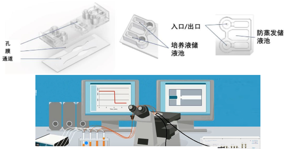 微流控芯片主体结构分为上下两层片基,由聚甲基丙烯酸甲酯(PMMA)、聚二甲基硅氧烷(PDMS)、玻璃等材料所制成,其中包括了微通道,微结构、进样口,检测窗等结构单元,外围设备有蠕动泵、微量注射泵、温控系统、以及紫外、荧光、电化学、色谱等检测部件。由于需要驱动和控制微流体的流动,以及对于温度和自动化的控制等因素,制作时需要在微流控芯片上安置电器设备,这也是微流控芯片的必要部分(如图所示)。 图. 微流控结构示意图 由于芯片上包含有不同功能的通道、泵、阀、混合室、检测区等,改变了过去需要大型设备、定环境、复杂操作的要求,达到了高精确、高效率、低污染的效果,可以广泛应用于临床检验医学、生物化学和分子生物等领域[3][4]。 (二)微流控芯片常用材料、工艺及操控技术 1、微流控芯片常用材料通过上面对微流控芯片的了解可以知道芯片制造材料的选择尤为重要,且应满足以下原则: ①材料有足够的化学和生物相容性,不能发生反应,否则会对芯片造成损害; ②材料具有电绝缘性和散热性,以便于更好进行作业; ③材料对于检测信号的干扰程度小,或者没有干扰; ④材料便于获得,且制作程序简单; ⑤材料具有良好的可修饰性,可产生电渗流或固载生物大分子。 微流控芯片的制作材料多种多样,下面就常用的聚合物和玻璃两种材料进行详细介绍。 优势 种类繁多、原材料成本低、易于加工成型、适合大批量生产,多用于生命科学领域。目前的应用最广泛,如PMMA可用于荧光检测、环状烯烃共聚高分子(COP)用于PCR和荧光检测等。 不足 不耐高温、导热性能低、部分材料价格较高。 代表