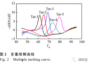 01 多重荧光定量 PCR 技术 1.1 基于荧光探针的多重 PCR 技术 多重荧光定量 PCR (Multiple fluorescencequantitative PCR)技术是在荧光定量 PCR 技术的基础上,利用几种不同荧光基团的组合,结合仪器对不同通道荧光的检测能力实现对多个靶标的实时定量检测。 TaqMan 水解探针 (Hydrolysisprobes) 是多重荧光 PCR 体系中常用的一种探针,探针一端标记荧光基团,另一端标记淬灭基团,通过在不同序列末端标记不同荧光基团及相应的淬灭基团,即可形成不同的 TaqMan 水解探针,将上述探针及相应的扩增引物加至同一反应体系,即可实现对多个靶标的共同检测。 Weller等 [7] 以 TaqMan 探针为基础,成功构建了两重 PCR扩增和检测体系,Zhang 等 [8] 通过单管逆转录反应成功地实现了对肠病毒 71 型 (EV71)、柯萨奇病毒 A16 (CA16) 以及总肠道病毒 (EVs) 的三重检测。 分子信标 (Molecular beacon) 是多重 PCR 体系中另一种常用的探针,基于荧光共振能量转移(Fluorescence resonance energy transfer,FRET) 的原理,当体系中不存在特异性的靶标时,分子信标会自发形成茎环结构,淬灭基团与荧光基团相互接近从而发生 FRET,不会产生荧光。 如果体系中存在特异性的靶标,在一定的条件下,茎环结构会打开并且与靶标进行复性,从而产生荧光信号。那么在同一个反应体系中加入几种靶标特异性的分子信标就能够实现对多个靶标的同时检测。Vet 等 [9] 针对 4 种不同的靶标设计了 4 种不同的分子信标并且首次在四色荧光 PCR 仪上实现了四重的检测,El-Hajj 等 [10] 利用五色分子信标探针实现了对结核杆菌利福平耐药突变的检测。 1.2 基于探针编码的多重 PCR 技术 基于水解探针和分子信标探针的多重荧光定量 PCR 技术的优点是简便快捷,然而受仪器荧光检测通道的限制,往往最多只能达到四重或五重检测。 组合探针编码 (Combination probecoding) 技术的开发,使得目前的多重实时核酸扩增可检测的靶标数目多于仪器可检测的数目。通过对 4 种不同的荧光基团进行相互组合可以形成15 种指示探针 (图 1),在多重反应体系中加入多种靶序列特异的置换探针 (Displacing probes),那么在检测通道有限的情况下仍能够实现对多种不同的靶标同时进行扩增和检测。 Huang 等利用多色组合探针编码技术 (MCPC) 实现了对 8 种食源性病原菌的鉴定以及通过 4 色组合探针编码技术实现了对 15 种不同型别的 HPV 病毒进行分型 [11-12] 。 1.3 基于荧光染料的多重 PCR 技术 非特异性的荧光染料嵌入到 DNA 双链小沟中后,在特定的激发光激发后将会产生一定波长的荧光。 以此为基础发展了熔解曲线 (Meltingcurve) 分析法,利用不同 DNA 序列具有不同 Tm(Melting temperature) 值的特征,在 PCR 反应结束后,通过程序升温使双链逐渐解链成单链,当达到双链特异的 Tm 值所对应的温度时,荧光强度大幅度降低,利用这样的原理可以对 PCR 中不同长度的双链产物或相同长度不同 GC 含量的双链进行分析 (图 2)。 Singh 等 [13] 利用多重实时PCR 熔解曲线分析的方法,成功地实现了同时对氨苄西林、链霉素、磺胺、四环素、氯霉素耐药的沙门氏菌的检测与辨别,Mendes 等 [14] 建立了一种多重熔解曲线分析方法并且实现了对不同基因编码的金属-β-内酰胺酶型别的检测和鉴别。 针对不同的型别设计了特异性的引物对,从而对模板进行扩增生成不同的扩增子,扩增子之间T m 值各有差异,最后通过熔解曲线峰的位置进行鉴别。 在熔解曲线分析技术的基础上发展而来的高分辨率熔解曲线技术是一种利用饱和染料,借助高分辨率的仪器,实现对单个核苷酸熔解温度不同从而形成不同形态熔解曲线,进而对基因进行分析的新技术,它具有极高的灵敏度,能够检测出单个碱基之间的差别,目前主要应用于单核苷酸多态性分析、甲基化分析、基因突变、基因分型等领域 [15-18] 。