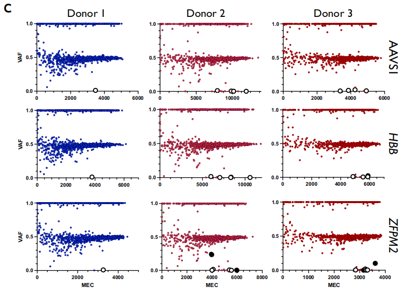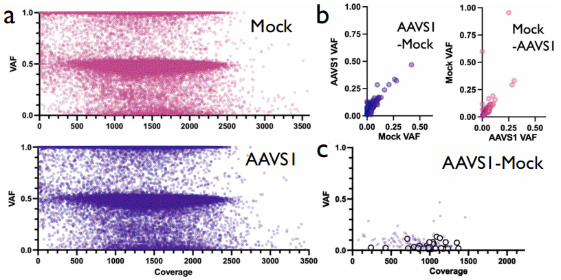 CRISPR系统由一个CRISPR/Cas蛋白与一个向导RNA(gRNA)组成,为了确保用于基因组编辑的CRISPR系统的临床安全,插入和缺失(INDEL)应仅发生在预期的基因组位点,而不会通过非同源末端连接(NHEJ)或同源定向修复(HDR)途径产生脱靶效应。低保真度Cas酶或当gRNA导向与目标序列类似的序列时,可能会发生非预期的基因组编辑,导至可能具有致癌或其他有害后果的非目标突变。检测基因组编辑方法的遗传毒性仍然是安全临床实施的基础。 基因组编辑/基因治疗在临床上的长期安全性的重要性最近得到了说明,在两个镰状细胞疾病基因治疗试验(NCT02140554和NCT04293185)中,两名患者因细胞毒化疗或慢病毒载体的插入突变而发展为髓系恶性肿瘤后导至临床试验暂停。由于这些安全性问题,在本研究中,研究团队试图确定Cas9编辑和/或体外扩增过程中是否引入了致癌变体。理想的方法必须进行超深测序,因为变异等位基因频率(VAF)低于1%的突变仍然无法被大多数全基因组脱靶检测技术检测到。能够检测SNV以及INDEL、扩增和多核苷酸变异(MNV)的超深测序工作流程有可能显著提高检测全谱致癌脱靶编辑活性的灵敏度,从1%到<0.1%VAF,这对于识别可能引发致病性克隆扩增的低频变异是必要的。 近日,一组来自美国顶尖学府的研究团队在杂志Nature Communications上发表了一篇题为“Ultra-deep sequencing validates safety of CRISPR/Cas9 genome editing in human hematopoietic stem and progenitor cells”的文章,在这篇文章中,研究团队开发了一个NGS工作流程,允许在最重要的基因组区域识别低频事件,以评估高风险遗传毒性。结果没有发现任何证据表明,在多个原代造血干细胞和祖细胞(HSPC)供体中,在三个单独的基因组位点进行Cas9体外基因组编辑会引入或富集致癌突变。当靶向AAVS1时,全外显子测序(WES)和全基因组测序(WGS)同样证实了这些发现。因此,研究团队定义了一种根据现有临床肿瘤学NGS诊断方法改编的方法,可用于在临床转化前评估当前和下一代基因组编辑工具、体外培养方案和细胞产品的安全性。 图片来源:Nature Communications 主要内容 实现了肿瘤抑制基因和癌基因的高覆盖率 为了对抑癌基因和肿瘤基因进行超深测序,研究团队使用hybrid-capture NGS assay深度检测523个癌症相关基因(跨越1.94MB DNA)外显子的DNA变异。这523个基因包括最常见癌症类型关键指南中的已知癌基因,以及许多在癌症(从非小细胞肺癌到胰腺癌)中常见突变的复发基因。 来自三个单独的健康供体的HSPC经受四种条件:Mock电穿以及三种不同的Cas9处理,其靶向位点为AAVS1、HBB或ZFPM2。文献中广泛记录了AAVS1和HBB处的Cas9活性,选择这些位点是因为它们分别具有相对较高和较低的靶外活性。为了确保每个gRNA具有高水平的靶向活性,对预测切割位点周围的基因组区域进行了靶向PCR扩增,然后进行桑格测序,并通过TIDE分析INDEL。在所有三个AAVS1和HBB gRNA供体中观察到高频率的靶向INDEL,但ZFPM2 gRNA诱导的INDEL较少,这是由于其预测的高脱靶活性。 初始实验的原始测序数据产生了所有样本的平均MEC>3550,分别对应于0.205%和95%的最小检测限(LoD)和灵敏度,且技术重复之间有高度一致性。 试验设计和靶向活性的确认。图片来源:Nature Communications 过滤非致病性胚系突变后,发现的变体很少 为了深入了解队列中确定的变体的特征,绘制了第0、4和10天Mock样本的VAF。当剔除同义变体以及之前报告在综合种系数据库中出现>10次的变体时,只剩下少数变体(每个条件下1490.1个可重复变体的平均值为3.9个变体)。 为了确定用Cas9编辑是否在肿瘤抑制基因或癌基因中引入突变,研究团队随后绘制了所有三个供体在第4天和第10天所有Cas9治疗组的VAF x MEC。接下来通过消除所有同义突变和/或胚系变体数据库中先前报告的突变剔除非致病性变体。与Mock样本相比,Cas9处理组具有更少的剩余变体(每个条件下的1487.9个可重复变体的平均剩余3.3个变体)。因为在Mock样品中发现的任何变体都不是被Cas9引入的,将其移除用于下游分析。在18个Cas9处理组中,过滤后仅剩下6个变体,其中4个是第4天和第10天ZFPM2处理中供体2和3中预期的EZH2突变。另外两个变体均为供体2和供体3中d10 ZFPM2处理中发现的SNV,其VAF<0.0015,接近检测极限。 TSO500测序数据总结。图片来源:Nature Communications Cas9 gRNA spacer纯合SNP消除EZH2脱靶活性 在供体2和供体3中,预期的EZH2脱靶位点在所有三个重复的d4和d10时间点显示出最高的VAF,置信度高(3893x覆盖率),平均脱靶活性为19.3%(图a)。尽管ZFPM2具有高度的脱靶活性,但在供体1中的EZH2处没有通过NGS或TIDE检测到脱靶活性(图b)。在研究供体1的该位点的桑格轨迹后,在spacer序列的第6位发现了纯合SNP。由于高保真Cas9的特异性,该纯合子SNP可能消除了该位点的所有活性。 在Cas9处理中鉴定的变体。图片来源:Nature Communications 全外显子测序证实了体外培养和基因组编辑中不存在脱靶活性 接下来将脱靶活性的搜索扩展到整个外显子组。外显子组分析在AAVS1处理中鉴定了137种体细胞变体,在Mock条件下鉴定了92种变体(图b)。 剔除了Mock处理中发现的>0.01 VAF的变体,留下30个体细胞突变供进一步分析(图c)。Cas9核酸酶活性通常在与spacer序列高度同源的位点周围引入indels,但过滤后的大多数剩余变体(30个中的17个)是SNV,并且在变体的上游或下游20bp内,发现30个突变中没有一个与spacer +PAM序列匹配>10bp。因此,无论是靶向抑癌基因/癌