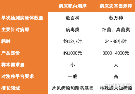 2022年,曾红极一时的病原宏基因组测序(mNGS)遭遇了前所未有的挑战。 病原靶向测序(targeted NGS, tNGS)的出现,让本来逐步红海化的病原宏基因组测序市场竞争格局,变得更加扑朔迷离。 一方面,病原靶向测序成本更低、操作更简便、耗时更短,刚一亮相就被临床医生和患者所青睐,而这正是商业化已多年的病原宏基因组测序一直在努力,却没能真正实现的目标。 另一方面,与病原宏基因组商业化之初相对单纯的技术流不同,病原靶向测序市场的参与者成分显然更加复杂。既包括规模庞大、渠道能力极强的第三方医检所,比如金域医学、迪安诊断、华银健康等,也包括病原宏基因组角逐中的佼佼者,比如金匙医学、杰毅生物等,甚至还包括以肿瘤基因检测为主的检测服务公司,比如吉因加等。这项门槛更低、确定性更强的技术应用,无疑正推动病原诊断市场发生深刻的变化。 那么,病原靶向测序的市场容量到底有多大?又将给已经参与其中,或者准备入局的企业带来怎样的机会?我们尝试解答。 从0到数十万的快速裂变 病原靶向测序的商业化历史很短,但势能很强。 “2021年4月,我们的‘病原靶向测序’产品开始在临床试用,在同类产品中是比较早的。”金域医学感染疾病线总监兼集团感染学科主任李培告诉动脉网。据她介绍,经过半年多的临床推广,临床医生逐渐意识到这种产品的技术优势,这项创新的尝试在临床上得到的认可程度出乎意料。 从某种意义上讲,病原靶向测序产品的迅速普及,是借了病原宏基因组测序(mNGS)产品的光。临床上,对于感染病原的确定,大多数医生并没有足够的判断能力,所以病原宏基因组测序产品在一上市即大火。几年间,资本疯狂涌入,捧红了微远基因、金匙医学、杰毅生物等病原宏基因组测序的明星企业,他们推动了这项创新产品在临床上的快速应用,也帮助一线的医生和患者建立了关于病原精准诊断的市场认知,每年已经有数十万患者通过病原宏基因组测序来确定自己所感染的病原体。 不过,病原微生物宏基因组检测也并非没有短板,检测灵敏度便是其中一个。在病原宏基因组测序中,宿主信息占测序数据量中的90%以上,而病原微生物的信号相对较弱,并且可能存在宿主基因干扰、分型困难等局限,因此对检测灵敏度的要求较高。对此,各家公司也在提高微生物信号方面积极优化技术,这让靶向测序技术有了用武之地。 病原靶向测序技术通过超多重PCR扩增与高通量测序两种技术的结合,对待测样本中几十种至几百种已知病原微生物及其毒力和耐药基因进行检测。在商业化过程中,病原靶向测序聚焦临床常见的感染病原体,通过设计特异性引物,采用超多重PCR建库体系,对目标序列进行靶向扩增富集,再利用高通量测序进行扩增产物同步检测。由于在测序时只对病原微生物核酸进行测序,这样就可以大幅度提高病原微生物的检测灵敏度。 病原靶向测序与病原宏基因测序对比 这种新的检测产品力求“所见即所得,检出就是感染”,从采样到出报告可以在12小时内完成检测,是一种在临床上具有更强的可及性和可操作性的病原诊断产品。以金域医学核心的病原靶向测序产品“上感50和呼吸100”为例,它们对特殊病原,比如结核分枝杆菌复合群、鹦鹉热衣原体、新生隐球菌等的检出敏感性可以做到比病原宏基因组测序产品更高的敏感性,并且能够同时兼顾DNA和RNA病毒,在病原亚型和亚种鉴定方面也可以提供更丰富的信息。 “对于不懂感染的医生而言,病原靶向测序相当于给出了大半答案,后续需要用到的知识储备和能力要求会少很多,困难更少,门槛更低。”李培指出,“目前,我们已经在这个细分赛道上取得了市场领先的地位。” 病原靶向测序的另一优势在于低成本。相比于目前耳熟能详的mNGS产品,病原靶向测序的成本仅为其1/4-1/3,更具卫生经济学价值。首先是在基因测序仪的选择上,病原靶向测序可以应用相对更简单、定价也更低的基因测序仪。病原靶向测序的核酸数据量是病原宏基因测序的1/100,从而测序数据量更小。比如,金域医学就采用低通量的基因测序仪来完成病原靶向测序,而病原宏基因测序测往往需要配置通量更高的大型基因测序仪来完成。其次是测序仪运行时所配置的试剂,也相对更简单,对应的成本更低。最后是在测序操作层面,病原靶向测序对使用者的专业水平要求没有很高,整体的自动化程度更高,会在一定程度上降低人力成本。 动脉网了解到,当前,金域医学每个月可以完成近2万例样本检测。在李培看来,按照病原靶向测序的发展势能估算,未来每年接收的病原靶向测序样本将超50万例。 而实际上,金域医学之外,一大波病原靶向测序企业正在赶来。动脉网分析发现,这些病原靶向测序产品在技术路径和病原体覆盖数量方面大同小异,都旨在覆盖临床上常见的DNA病原体、RNA病原体和耐药基因,只是在病原体组合、测序平台、临床推广路径等方面有所差异。 目前市场上主要的病原靶向测序产品 比如,2021年10月,因美纳在美国推出了一款采用了靶向测序技术的广谱呼吸道病原体耐药基因检测试剂盒,可以一次性覆盖282种DNA和RNA病原体,同时包括部分耐药相关基因。而华银健康主推的基础版和升级版病原靶向测序产品也覆盖了200种左右的DNA和RNA病原体,及近百种对抗感染治疗有明确指导意义的耐药基因,主要面向住院感染患