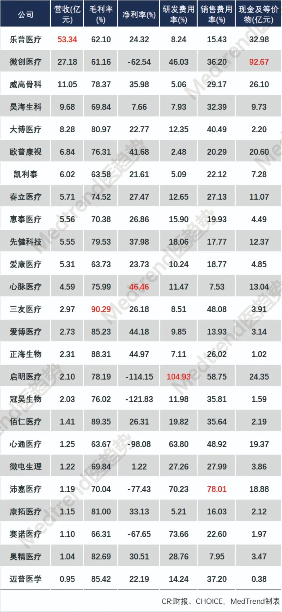启明医疗(心血管)亏损2.4亿元(净利润-104.47%),亏损额排第三;微创医疗(心血管、骨科):2022年上半年营收4.05亿美元(+5.3%),增速远低于去年的20.45%;亏损额高达2.53亿美元(约17亿元)。三大核心板块营收全线下滑。2020年,微创医疗出现五年来的首次亏损;2021年净亏损额扩大至2.76亿美元;2022年进一步加剧。而其不断分拆上市也没能解决盈利问题。- 2022年8月,微创医疗第5家子公司微电生理登陆港交所。(5家子公司目前只有“微创脑科学”和“心脉医疗”处于盈利状态)。