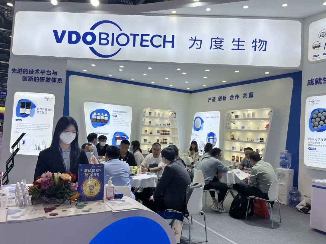 明星产品 延续高光表现 作为为度生物的明星产品,核酸提取磁性微球与免疫层析彩色微球在业内已形成良好口碑。在此次展会的为度展台,它们也获得了很高的关注。尤其是新冠疫情以来,作为核酸检测与抗原检测试剂产品的核心原料,为度生物的产品不仅体现了强大的规模化供应能力,更是在产品性能质量上稳扎稳打,为下游客户的研发生产提供了坚实的保障。