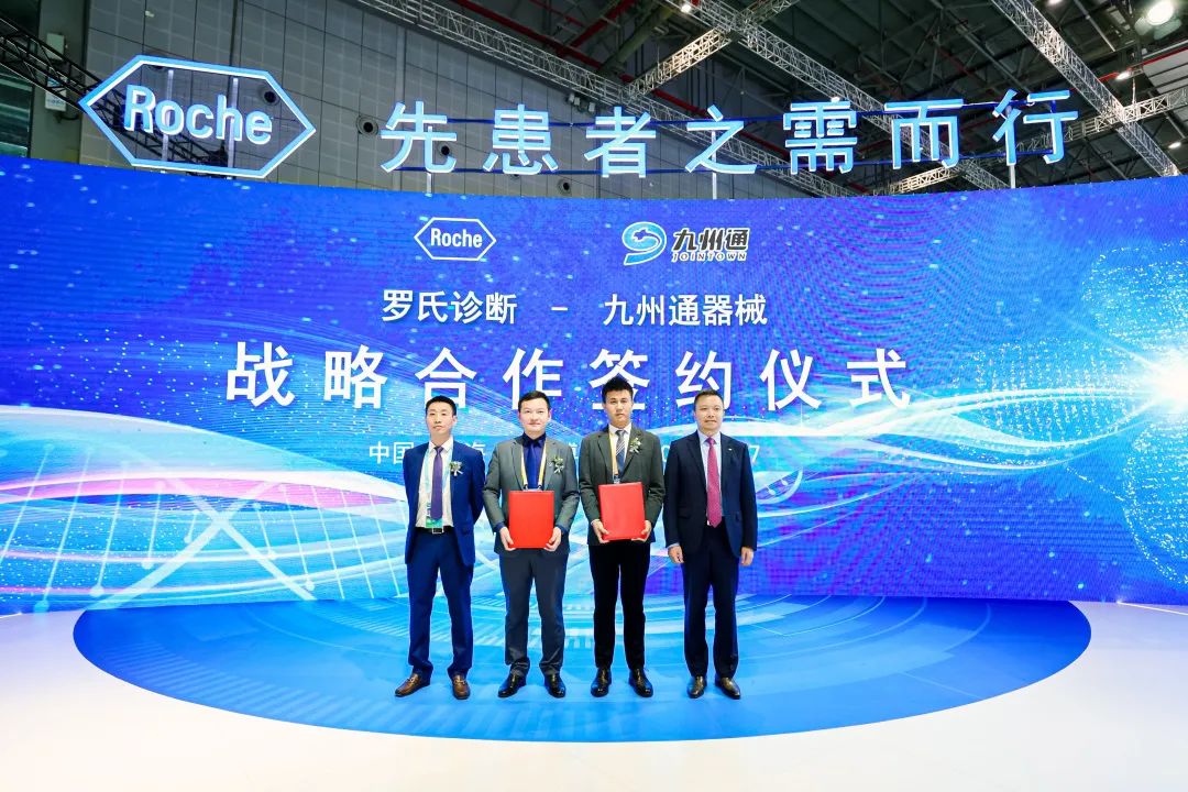 在第五届中国国际进口博览会上,罗氏诊断产品(上海)有限公司(以下简称“罗氏诊断”)与九州通医疗器械集团有限公司(以下简称“九州通”)达成战略合作。双方将充分发挥各自的资源和产能优势,在尿液分析检测领域展开多维度合作,加速医械供应链生态圈的建设。 上海市金山区人民政府副区长葛钧,上海市金山区经委副主任季育青,上海市金山区枫泾镇副镇长秦绪楠出席活动并见证此次签约。 整合优势资源 深化尿液分析检测产品布局 尿液检测是临床最常见的检测项目之一,不仅可以反映肾脏、肝脏、泌尿系统、内分泌系统等疾病状况,也可间接反映全身代谢性及循环等系统的功能。随着“健康中国”战略的持续推进,公众对医疗健康的需求日益增长,由此对尿液检验的质量与效率提出了更高的要求。准确、快速的尿液检测结果可为相关疾病的筛查、诊断、治疗监测、预后评估等提供可靠依据,有助于临床医生制定个体化治疗方案,抓住最佳诊疗时机,提高患者治疗效果。 尿液常规检测包括有形成分分析和干化学分析。传统的尿液有形成分分析采用尿沉渣显微镜检查,需由人工操作完成,其周转时间长且容易受到操作规范、个人经验等因素的影响;尿液干化学分析的准确性也受到以维生素C为主的多种因素影响。罗氏诊断cobas 6500 全自动尿液分析系统采用数字图像分析技术,可实现无人值守运行,显著提高了检测效率,将人为干预减少到最低。此外,分析仪所使用的Combur-Test® 试纸技术,配有独立碘酸盐夹层,能够有效消除抗坏血酸的影响,排除维生素C的干扰,提供准确度高的结果。同时,cobas 6500实现了干化学和尿成渣结果在同一屏幕上呈现,方便结果审核,在优化实验室工作流程上给予了很大的帮助。 根据战略合作意向,罗氏诊断将与九州通就旗下的尿液分析检测产品——cobas 6500全自动尿液分析系统和Combur-Test®尿干化学试纸展开合作,助力强化罗氏诊断尿液分析检测产品在全国的布局与发展,全面构建高标准、高品质、全场景的医械生态聚融,开创医械供应及服务的跨越式新体验。 罗氏诊断中国总经理姚国樑表示:“作为全球体外诊断领域的领导者,罗氏诊断通过将全球领先的体外诊断系统和解决方案引入中国,满足中国市场对精准、高效检测的需求。罗氏诊断通过进博会这个平台,积极寻求与国内卓越企业探索创新的业务合作模式,形成优势互补、填补市场空白,推进中国疾病诊疗一体化生态圈的建设。此次与九州通携手合作,将充分结合罗氏诊断行业领先的诊断解决方案与九州通强大的渠道平台优势,进一步扩大尿液检测产品的可及性,为实验室及各临床科室带来更多的医疗价值,造福更多中国患者。” 强强联手 加速医械供应链生态圈建设 九州通医药集团股份有限公司是科技驱动型的全链医药产业综合服务商,连续多年位居中国民营医药流通企业第一名。旗下九州通医疗器械集团依托于九州通医药集团的强大平台优势,致力打造国内最专业的医疗器械平台服务商。目前九州通医疗器械集团在全国设有31家全资医疗器械公司、74家合资医疗器械公司,在九州通医药集团下属的45家分公司设立医疗器械部、超过480个配送点和30余家物流配送中心。 上海九州通医疗器械供应链有限公司总经理潘亮表示:“九州通医疗器械集团自2012年成立以来,始终秉承‘专业让服务更卓越’的服务理念,持续提升专业化服务能力,致力于将贴心、专业的服务送达每位客户,扩大和完善医疗器械营销网络布局,为医疗健康产业提供高性价比服务。很高兴在进博会上与罗氏诊断达成战略合作,九州通将充分发挥在渠道覆盖、物流配送、供应链管理、售后服务等领域的资源优势,助力罗氏诊断尿液分析检测市场战略的稳步推进,进一步实现全国渠道的网络化布局,期待通过整合双方的优势资源,为广大中国患者带去更多国际前沿的诊断解决方案,助力中国医疗健康事业持续发展。” |