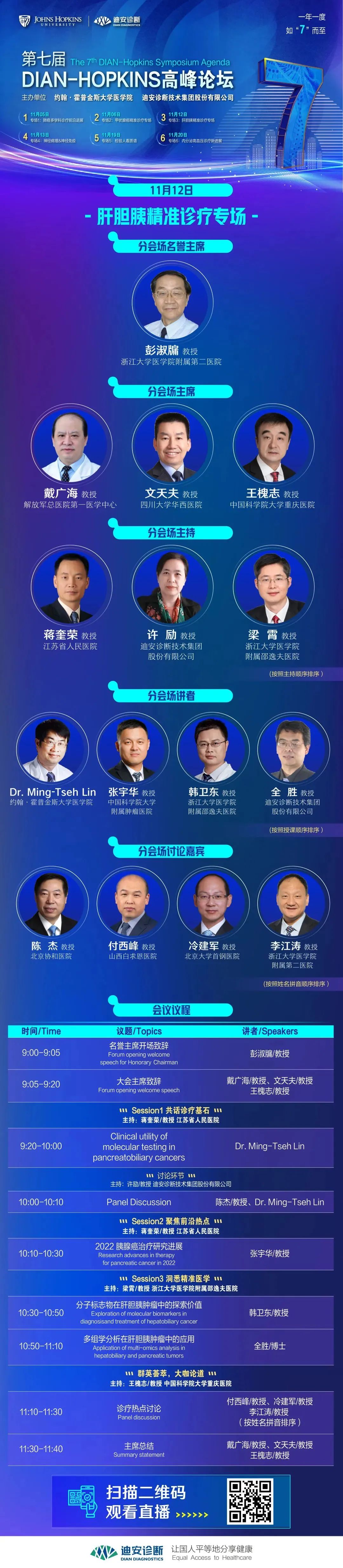 本月,“第七届DIAN-HOPKINS高峰论坛”正在以学术活动月的形式火热进行中。 本周末,第七届“DIAN-HOPKINS高峰论坛” 肝胆胰精准诊疗分会、神经病理&神经免疫分会将分别于12日、13日以全球网络直播形式在线举办。 肝胆胰精准诊疗分会 肝胆胰肿瘤是复杂、异质性较强、严重危害人类健康的消化系统恶性肿瘤。精准治疗的前提是精准诊断,肝胆胰肿瘤的诊疗进入了个体化、精准化时代。基因检测在肝胆胰肿瘤全程化管理中扮演了十分重要的角色,无论是预后提示,用药指导,还是疗效监测。 本次肝胆胰肿瘤专场特别邀请了病理专家、肝胆胰外科专家、肿瘤内科专家以及分子生物学专家,共同探讨临床与病理学术前沿进展和基因检测及多组学技术在肝胆胰肿瘤精准诊疗的行业应用新思路。 神经病理&神经免疫分会场 本月5日起,“第七届DIAN-HOPKINS高峰论坛”正在以学术活动月的形式展开,共有6场主题论坛、25场专题报告。学术活动月将重点围绕肺癌、甲状腺癌、肝胆胰腺肿瘤、神经病理、神经免疫疾病、质谱和内分泌高血压主题展开,预计有60多位医学名家纵论疾病之道,对目前值得探讨和思考的热点学术问题做深入讨论交流,加强基础研究与临床实践的紧密结合,进一步推动转化医学的进展。 直播入口 诚邀国内外医学同行积极参与! 更多详情敬请关注后续会议预告及报道! |