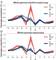 文章发表在PNAS 为了研究DNA甲基化和cfDNA片段化之间的关系,研究人员基于此前研究中8名健康对照组血浆DNA的亚硫酸氢盐测序结果,检测了与高甲基化和低甲基化CpG位点相关的裂解概况。结果显示,高甲基化的CpG位点(位置0)的裂解比例是低甲基化CpG位点2倍。值得注意的是,cfDNA的裂解概况和预先设定的甲基化模式之间的关系可以在配对的非亚硫酸氢盐测序数据中重现。