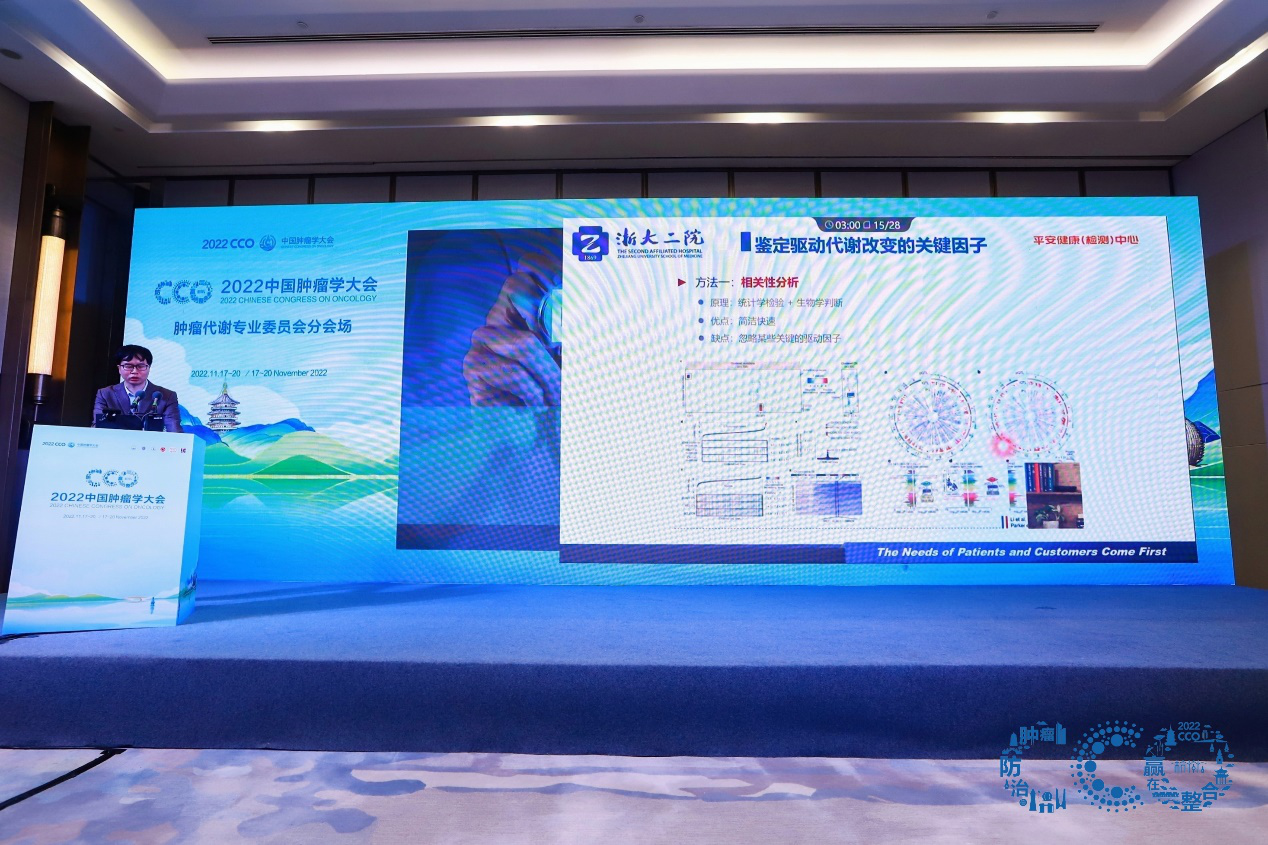 19日下午,肿瘤代谢分会在杭州国际博览中心召开。本次会议邀请了三十余名来自国内外知名专家教授,分享前沿技术、最新成果。同时上万名代表通过线上同步参会。 会议中,中国科学院院士林圣彩开场做主题报告。来自浙江大学医学院附属第二医院的陈佳琦教授带来肿瘤代谢组学在肿瘤研究中的应用专题分享。陈教授在分享中提到,肿瘤在发生、发展过程中,有特定的代谢过程。利用代谢组学技术监测这些过程中代谢物的变化或波动情况,对早期诊断并预测肿瘤的进展有着重要意义。