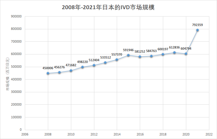 今天我们聊一聊日本的IVD市场,据世界银行报道,日本的2021年GDP为4.9万亿美元,约占全球的5%,世界排名第三,略低于我国广东省、江苏省、山东省的总和,总人口数量约为1.26亿人,与广东省总人口数相当。据报道,日本的医疗器械市场约占全球的5.6%,排名第四,IVD人均消费是中国的6倍。那么日本的IVD市场到底如何呢? 据日本临床检验协会(臨床検査薬等の売上金額)的最新数据,日本在2021年的IVD市场规模约为57亿美元(792,359百万日元)相较于2020年增长31%。 而日本的IVD细分市场包括IVD诊断试剂、OTC试剂、检测试剂(试剂耗材)、仪器设备。其2021年的细分市场如下: IVD诊断试剂约占体外诊断市场的62%。 仪器设备约占体外诊断市场的20%。 检测试剂(试剂耗材)约占体外诊断市场的18%。 OTC试剂占体外诊断市场的<1%。 声明:1、凡本网注明“来源:小桔灯网”的所有作品,均为本网合法拥有版权或有权使用的作品,转载需联系授权。2、凡本网注明“来源:XXX(非小桔灯网)”的作品,均转载自其它媒体,转载目的在于传递更多信息,并不代表本网赞同其观点和对其真实性负责。其版权归原作者所有,如有侵权请联系删除。 3、所有再转载者需自行获得原作者授权并注明来源。 最新评论相关分类图文热点 最新文章