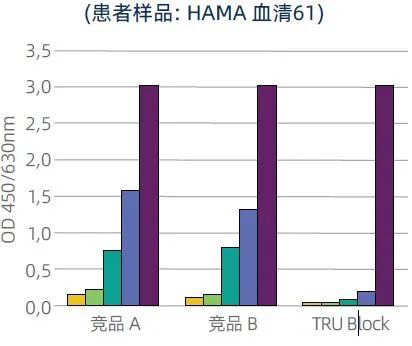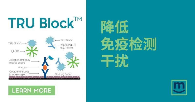 用于人体体外诊断(IVD)的免疫检测通常使用动物源抗体(比如鼠源性单抗)来识别特定的疾病标记物。但是,部分患者的血液中存在的抗该种动物抗体(比如HAMA)会与检测试剂中的动物源抗体发生反应,产生假阳性或者假阴性结果从而干扰诊断检测的准确性。 由于商用诊断免疫分析较多使用小鼠单克隆抗体, 所以HAMA干扰是最多见的一种类型。对其他动物的HA干扰如山羊 (HAGA)、绵羊(HASA)和兔子(HARA)的干扰,在使用来自这些动物的抗体进行免疫 检测时,也可能导至错误的结果。 除了HA,还有一种被称为类风湿因子(RF) 的干扰,是一种自身抗体, 可与患者自己的免疫球蛋白(IgG)发生反应, 也可能与动物Ig 交叉反应导至“RF干扰”, 这与HA/HAMA 干扰类似。 为了减少HA、HAMA和RF带来的检测干扰,IVD制造商经常使用动物血清或纯化的动物IgG,它们可以结合针对同一来源动物的低交叉反应抗体。 例如,小鼠血清,或小鼠IgG,它可以用 来阻止HAMA干扰。虽然小鼠IgG可以有效地阻断HAMA,但它也有一些局限性,包括: • 覆盖范围窄,只屏蔽HAMA,不屏蔽其他类型的HA干扰 • 不能阻断RF干扰 • 需要使用高浓度来达到充分阻断干扰的效果 • 主要阻断原理依赖于被动阻断技术 小鼠IgG和其他IgG通过提供替代结合位点阻止干扰抗体与捕获抗体或检测抗体结合。它们必须在高浓度下使用,通常浓度必须比检测抗体的浓度高出十倍以上,这可能对检测信号产生负面影响,且效果取决于干扰抗体与动物IgG的亲和力。因此,这对于一些需要降低检测成分用量的小型免疫检测中是一个挑战。 迈迪安开发的TRU BlockTM的免疫检测阻断剂是一种全新的HA、HAMA和RF阻断剂。TRU Block含有一种专门的结合剂,可以直接对抗抗体干扰,能够与HA、HAMA和RF高亲和力结合。 一旦与干扰抗体结合, TRU Block会通过位阻进一步阻止HA与其它试验成分结合。TRU Block的性能优势包括覆盖范围更广,可以阻断所有类型的HA和RF的干扰广,并且可以在低浓度下使用,与小鼠IgG相比具有更好的阻断效果。 TRU Block的阻断性能分别通过间接法(图 1)和直接法(图2)双鼠单克隆ELISA检测中进行评估。TRU Block,小鼠IgG和另一种常见的HA阻断剂,分别添加到样本稀释缓冲液中,对比他们的阻断效果。结果表明,在基于ELISA的免疫检测中,TRU Block的阻断性能优于小鼠IgG和其他商用阻断剂。 TRU Block也已成功用于化学发光检测和侧向流免疫检测中,干燥后用于样品垫和检测抗体之间即可。 性能对比– TRU Block vs 竞品 异嗜性抗体干扰阻断剂是临床免疫诊断检测中的重要组成部分,在很多批准的检测中出现误诊的案例已经证明了其重要性。 检测中使用的抗体的来源和可能影响检测的异嗜性干扰的类型是选择阻断剂是需要考虑的重要因素。 TRU Block是一种强大的HA、HAMA和RF干扰阻断剂,可用于ELISA、免疫层析和化学发光检测平台中。 与市场上其他HA阻段剂相比,它具有明显的性能优势,在免疫检测中可以更有效地降低假阳性和假阴性结果的可能性。 今日起至2022年底,订购任意一个阻断剂样品享75折,订购两个或以上阻断剂样品可享5折,现在就联系我们吧 |