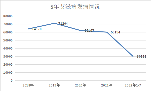 从艾滋病的发病率来看,过去5年的数据呈现下降趋势,其中新冠3年的下降尤为明显。预测2022年的发病人数低于2021年,或有可能低于6万。