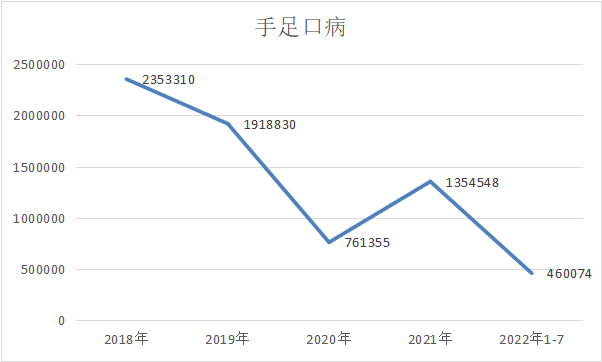 另一方面,手足口病的发病率则是持续下降,2021年虽然出现了反弹,但也在跟着下降趋势。