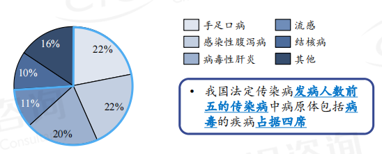 据灼识咨询数据,新冠疫情爆发后我国实行了严格的防疫措施,有效阻断了传染病的传播途径,因此2020年开始我国法定传染病发病人数骤降,一反法定传染病发病人数逐年攀升的历史趋势。