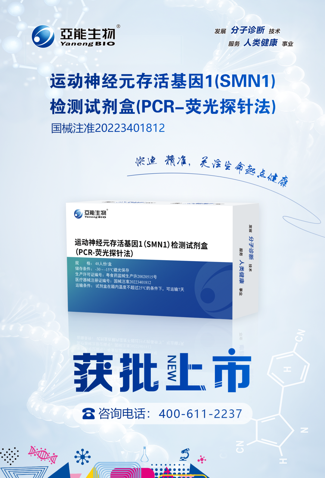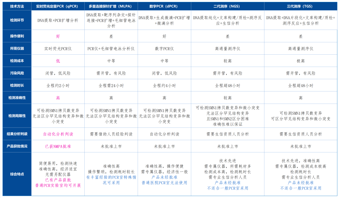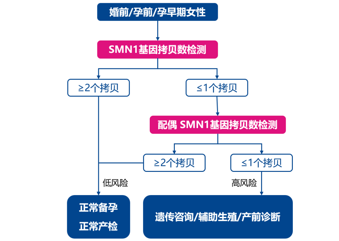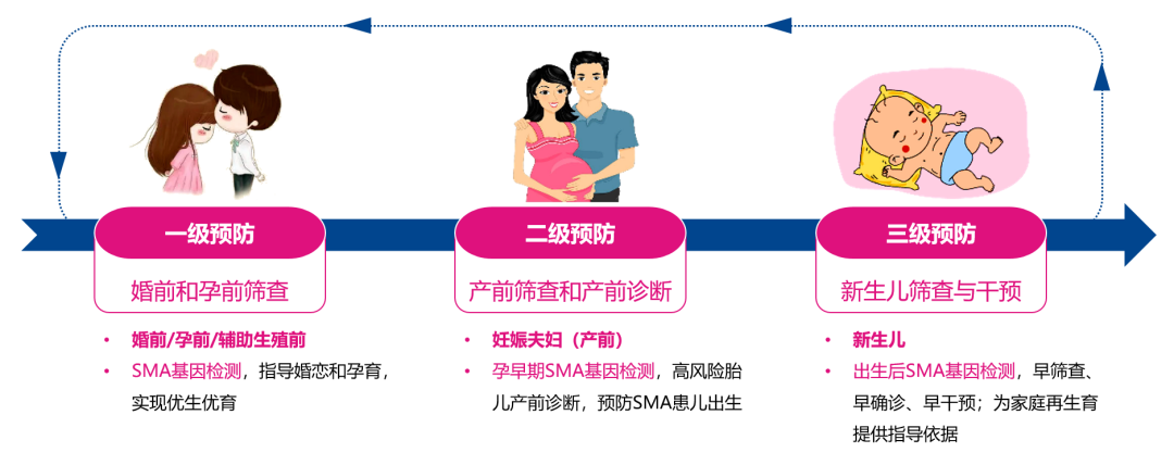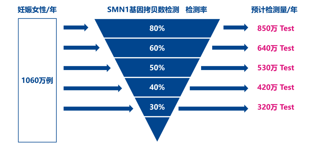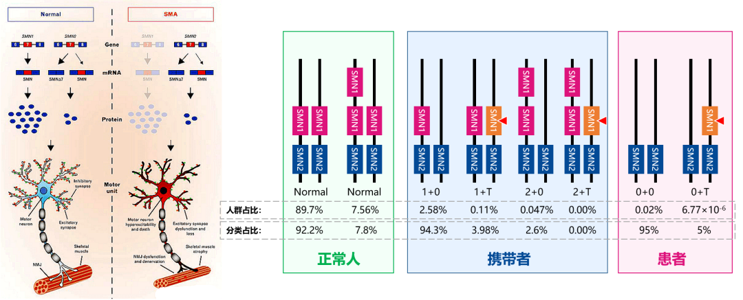 2019年,70万元一针的“天价特效药”上市,引发大众关注; 2021年,医保谈判“灵魂砍价”,“天价特效药”降价95%,从70万降到3.3万进入国家医保,再次引发社会关注; 同期,SMA治疗口服药“利司扑兰”主动宣布降价,或为医保谈判做准备; 2022年,1500万元一针的“史上最贵药”临床试验在中国开展; 2022年,国内自主研发的SMA基因治疗药物进入临床研究; 持续的火热,让SMA这个罕见病一次又一次出现在大众视野中 …… SMA疾病简介 1 SMA——2岁内婴幼儿头号遗传病杀手 脊髓性肌萎缩症(Spinal Muscular Atrophy,SMA)是一种遗传性神经肌肉疾病,患儿主要表现为全身肌无力与肌萎缩,身体逐渐丧失运动功能,根据发病年龄和临床病程进展,可将SMA由重到轻分为不同亚型(0-Ⅳ型,见下表),其中超过80%患者是症状较为严重的Ⅰ型和Ⅱ型。重症患儿无法正常坐立和行走,甚至呼吸衰竭而死亡,是导至2岁内婴幼儿死亡的首位遗传病,2018年被列入我国《第一批罕见病目录》。 2 SMA——SMN1变异所致的遗传病 SMA是由于运动神经元存活基因1 (SMN1) 变异导至SMN蛋白功能缺陷引起的神经肌肉病,SMN1编码全长且具有完整功能的SMN蛋白,维持运动神经元的存活,从而确保人脊髓前脚运动神经元的信息传导和控制。当两条染色体上的SMN1均发生变异导至无法转录翻译产生足够的具有完整功能的SMN蛋白时,脊髓前角运动神经元发生退化和凋亡,导至肌无力和肌萎缩,成为SMA患者。 现有研究表明: 1) SMA患者中:约95%是SMN1双等位基因纯合缺失所致(SMN1拷贝数为0);约5%为SMN1等位基因复合杂合突变(SMN1拷贝数为1但发生突变)。 2) SMN1突变谱:超85%为外显子7和8均缺失;约10%仅外显子7缺失;约5%为其他突变;外显子8不参与编码SMN蛋白,不影响SMN蛋白功能。 3) SMN2基因:与SMN1高度同源但有5个碱基差异,是SMA的修饰基因,不影响致病,但可影响疾病的发病时间、严重程度和疾病进展。 SMA是常染色体隐性遗传病,其遗传模式符合孟德尔遗传定律(如下图所示),杂合子(携带者)无疾病症状,纯合子或复合杂合子才会患病。 SMA治疗与预防 1 SMA治疗——仍有局限 目前,国内获批的SMA的治疗药物包括诺西那生钠注射液(Nusinersen)和利司扑兰口服药(Risdiplam),两个药物都通过改变SMN2的mRNA剪切规律来增强全长功能SMN蛋白表达,弥补SMN1变异所致的缺陷。然而,该类药物只能帮助延缓SMA疾病进展、改善运动功能,提高生存率,无法彻底治愈SMA患儿;基因治疗药物(例如Zolgensma和EXG001-307)已在国内进入临床试验阶段,有望治愈SMA患儿,但高昂的治疗费用让大部分患儿家庭无法企及。 SMA治疗天价特效药纳入医保,大大提高了治疗的可及性,为SMA患儿家庭带来了希望。但是目前的SMA患儿的治疗方案需要终生用药,虽然有医保分摊部分经济负担,但患儿家庭仍需承担长期用药的自费部分和其他支持性治疗费用,还需骨科、呼吸、营养、康复、心理等多个科室的综合干预;家庭需有专人长期照护,需要大量的时间精力和经济支出做康复训练。 一个SMA患儿的出生无疑会给社会和家庭带来沉重负担,国家医保一次又一次“灵魂砍价”让我们感动,也在提醒我们疾病的治疗需要付出昂贵的代价,提醒我们需要关注SMA等罕见病的预防——对于SMA等遗传病来说,预防是最经济、最有效的健康策略。 2 SMA预防——三级预防策略 随着分子诊断领域基因检测技术的持续进步和发展,越来越多如地中海贫血、遗传性耳聋、血友病A、脊髓性肌萎缩症(SMA)等遗传病被我们发现和深入了解,也让我们对单基因遗传病导至的出生缺陷有了预防的策略——三级预防: 1) 一级预防:婚前/孕前人群开展SMA基因检测,可以指导科学婚恋和孕育,实现优生优育; 2) 二级预防:妊娠夫妇在孕早期进行SMA基因检测,可以发现携带者,为双方均携带SMA致病变异的高风险夫妇提供遗传咨询,通过产前诊断即可有效预防SMA患儿出生; 3) 三级预防:新生儿进行遗传代谢病筛查时同时接受SMA基因检测,可以实现早诊断、早干预,延缓疾病进展,改善运动功能,提高生存率(药物临床试验证实在出现症状前开始治疗的SMA患儿在存活率和运动里程碑达成等方面都得到了更大获益);也可指导家系诊断和咨询,避免再次孕育SMA患儿。 3 SMA相关临床指南与专家共识建议 随着对SMA疾病的了解和深入,国际和国内临床均对SMA的防治进行了大量的实践,并取得成功的经验。目前,国内外临床指南/专家共识均建议对育龄人群、妊娠夫妇、新生儿、疑似SMA患儿及其家庭进行SMA基因检测,围绕三级预防策略,减少SMA患儿出生、尽早治疗干预SMA患儿、为患儿家庭提供再生育指导,以实现优生优育、早诊早治。 SMA基因检测 1 SMA基因检测技术 SMA致病变异多为SMN1双等位基因纯合缺失所致(SMN1拷贝数为0),极少部分为SMN1缺失复合突变所致(SMN1拷贝数为1,但该等位基因发生致病性突变)。 结合SMA致病基因SMN1的变异规律和特点,实验室可采用实时荧光定量PCR(quantitative real-time PCR,qPCR)、多重连接探针扩增(multiplex ligation-dependent probe amplification,MLPA)、数字PCR(digital PCR,dPCR)、第二代/第三代高通量测序(NGS/TGS)等技术进行SMA基因检测,不同技术方法各有特点,相互结合即可准确检测SMN1拷贝数变异和碱基突变。 2 SMA基因检测市场 近年来,SMA相关的“天价特效药”上市、“每一个小群体都不应该被放弃”、医保“灵魂砍价”等一系列热点事件的曝光和传播,让越来越多的医护人员和行