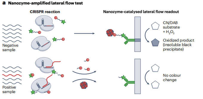 基于Cas的反应可以与纳米酶扩增LFT相结合。