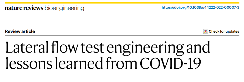 近日,一组来自世界各地包括英国、美国、新西兰的研究团队在新创办nature reviews系列杂志nature reviews bioengineering上发表了一篇题为“Lateral flow test engineering and lessons learned from COVID-19”的综述文章。在本综述中,研究团队讨论了LFT的设计原则,并强调了在新冠肺炎疫情中使用LFT的关键经验教训,包括可及性、准确性、可承受性、制造、监管和资助。还研究了LFT检测对流行病、地方性感染和抗微生物耐药性的影响,讨论旨在满足REASURED标准的生物工程方法(即,具有实时连接、易于制备样品、价格合理、敏感、具体、用户友好、坚固可靠、无设备或环境友好、可交付给最终用户)。最后总结了研究人员、行业、资助者和决策者的研究与开发(R&D)优先事项。