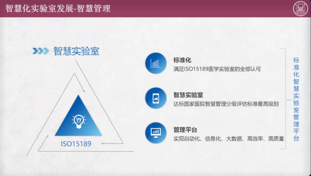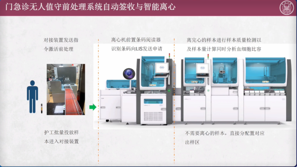 随着国家防疫政策的不断优化,各地各级医疗机构临床实验室的工作重心正逐步回归到临床诊疗上来。过去三年,新冠疫情的出现一方面是对全体检验人的一次严酷考验,另一方面也实际促进了检验医学的发展。在新形势下,检验医学将走向何处?医院检验科、区域医学检验中心和独立实验室作为检验医学发展的“三驾马车”,未来的发展重心又在哪里? 2022年 12 月 15 日晚 19:00,"2022年检验医学质量与信息化管理"圆桌论坛第十期(检验医学“三驾马车”对检验医学未来发展的展望),将就医院检验科、区域医学检验中心和独立实验室各自未来的发展展望,邀请行业专家做深度解读和分享。 【直播回放视频】 专家讲座内容精要 《医院实验室对检验医学发展的展望》 中山大学附属第一医院-张式鸿教授 目前我们科室年样本数约400多万,其实门急诊220多万,年测试数4500万,其中3000多万来自门急诊;日均样本数2.1万,门急诊样本数约为9000,日测试数13万,其中门急诊约8.2万。 2019年疫情前我科室急诊样本总量已经占到总量的52%,到现在该数据已经提升至55%。从检验角度来讲,急诊检验对临床的帮助越来越大,临床对急诊检验的要求也越来越高,同时需求会越来越多。 日常工作中样本时间分布集中,主要集中在上午7:00~11:00的的高峰。样本分布的集中也给各部门的工作带来一定的挑战。另外,夜班样本量也已经达到总量的将近30%,每日样本量可以达到2000多个,这也是急诊检验非常大的挑战。目前急诊实验室样本TAT时间60%~70%在90分钟以内,门诊常规样本的TAT时间也大部分都在90~120分钟之内,报告发布时间也集中在9点到12点之间,这也对实验室实践、空间、人力、物力的调配有着很高的要求。 门急诊实验当下存在的挑战: 1.人员:人员不足,样本量增长过快;夜班样本量2000左右,2人负责。 2.空间:门急诊空间有限,但占样本量的52%。 3.检验质量:样本量大,TAT时间要求高,人员和场地有限,如何确保检验质量是巨大的挑战。 4.样本周转时间:场地有限,人员不变,样本量过快增长的情况下,如何保证TAT。 急诊最短缺的是人,尤其是夜间急诊。过去门急诊实验室从签收、离心、上机到危急值处理、审核等所有的流程都有时间上的等待,都需要人员处理。 如何减少人为介入,自动完成流程的对接,提高工作效率?我们利用现有的各种设备,主动减少人为处理干涉的环节,形成一个无人值守流程。 无人值守流程里包括自动签收、自动离心、自动分类、自动检测、自动审核以及最后的人工处理异常结果和危急值。由于空间的问题,我们目前没有做到自动对接上样。当然最理想的的情况是每个环节都能够自动对接,但这明显还不现实,而且目前所谓的流水线并不一定是高效率的,在批量处理或者减少人力方面确实,但不是所有的自动对接都能提高我们的工作效率。 无人值守前处理系统需要具备哪些条件? 1.自动化样本前处理/流水线系统,具有可实现第三方对接的批量装载系统(BLM)的前处理系统。前处理离心机系统具有条码阅读装置,同时离心机需支持LIS系统指令以便选择离心参数。 2.自动化中间体系统,功能强大的自动化中间体软件,实现监控前处理样本处理情况,并实施反馈给用户。 3.功能强大的LIS系统,能同时实现与前处理离心机单元以及前处理的对接。 样本前处理过程如何实现无人值守自动化? 1.传送端口在门诊窗口外; 2.样本实现穿越天花板运送以及自动签收 3.有样本传送是启动BLM批量转载系统 4.离心机由LIS控制 5.识别样本质量,正常样本传送至目标区,异常样本传送至血清质量错误去。 目前我院门急诊前处理处理的样本覆盖门急诊128项检测项目,9月份处理样本58828份,单日最高3383份,日均2000份。 自动签收与智能离心 样本通过前处理以后,已经同LIS系统完成信息对接,只要样本进来,就会完成自动签收并记录相应信息。因此不再需要跟工人去核对样本,既节约了人力又加速了后续流程。 样本质量检测的重要性在于样本质量直接影响检验结果。通过智能样本质量检测替代离心后的人工肉眼观察,并且全程提示,保证样本质量,同时提醒不同的项目存在的关联,出现问题样本,我们会及时跟临床进行沟通,进行复检或者其他处理,减少样本的实验室等待时间,同时也可以给临床提供更优更快的检验结果。 同时还会把样本的质量检测信息,通过前处理中间体平台发送到LIS系统里面,由LIS接受存储并呈现。可以实现自动判断血清质量、剔除问题样本、避免无效检测、实时监控、主动提醒、实现可视化管理,减少人员再核对的工作量,降低人员的工作强度。 通过前处理中间体系统的样本生命周期监控,24小时实时滚动监控,当天所有的样本状态都可以通过智能监控,实时看到样本所在环节,未处理、未报告提醒工作人员及时处理并进行报告。 因此,前处理中间体系统能实现TAT预估、工作量预估和提前准备。 无人值守带来的成效 全程可控:减少人为影响因素;缩短TAT;提高工作效率;减少劳动强度,尤其是夜班急诊。 可视化:有据可依,及时退检,及时纠正抗凝剂,减少病情延误,离心符合要求。 为什么需要自动审核系统? 样本量大、需要人处理的环节太多; 来不及及时离心同时还要试剂准备、做定标质控等; 人员工作能力和熟悉程度有差异; 科室样本量增长快而人手增长慢甚至不增长; 因为事情对,结果出来后不能及