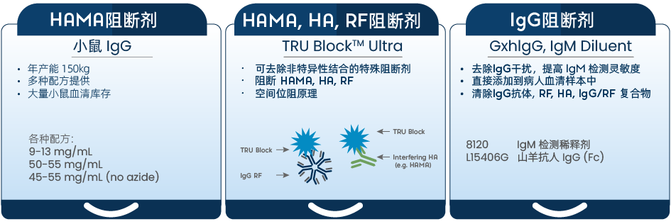 因此,想要提高免疫诊断检测的准确性和特异性,使用专门的免疫阻断剂来降低这些非特异性干扰引起的错误结果是必不可少的。