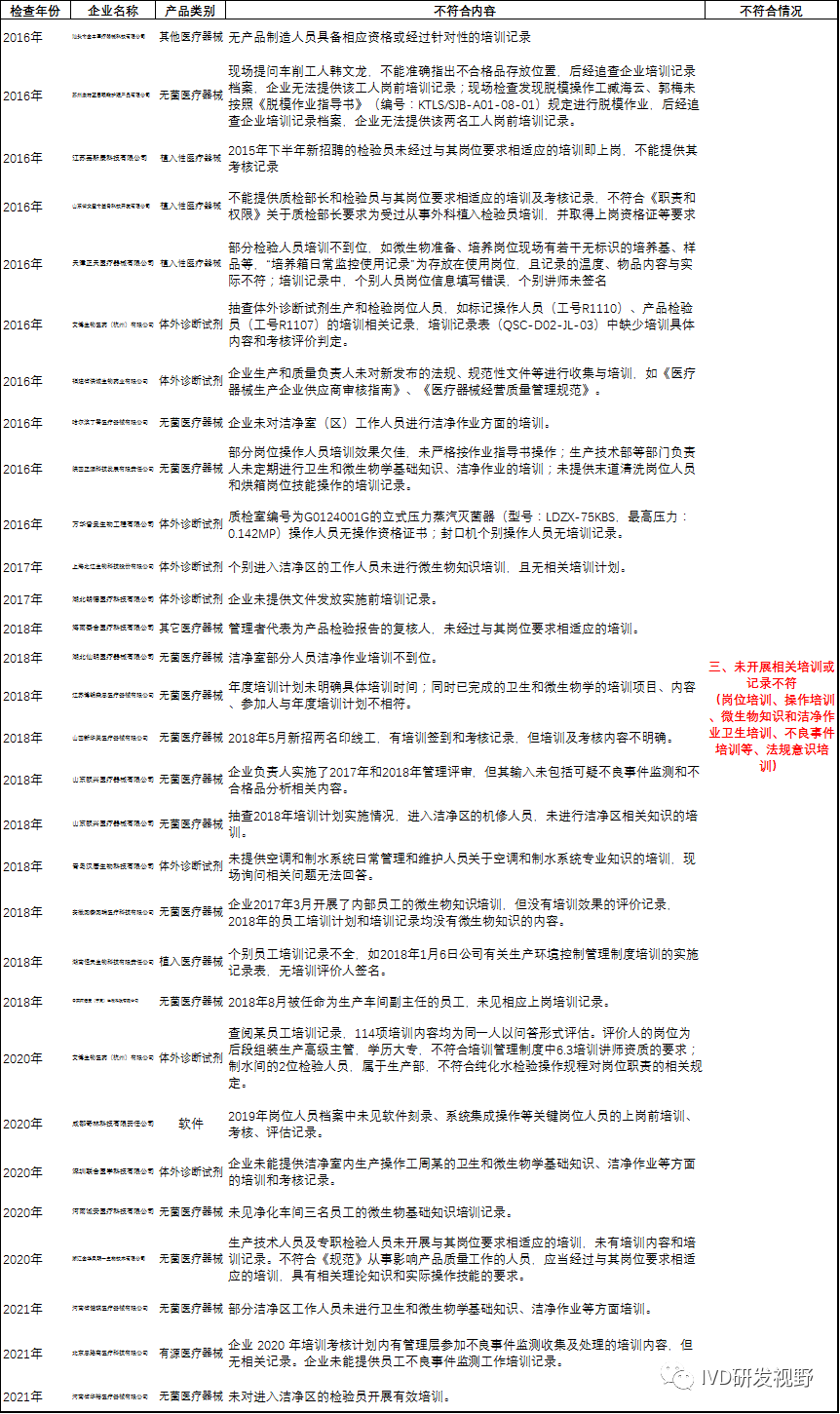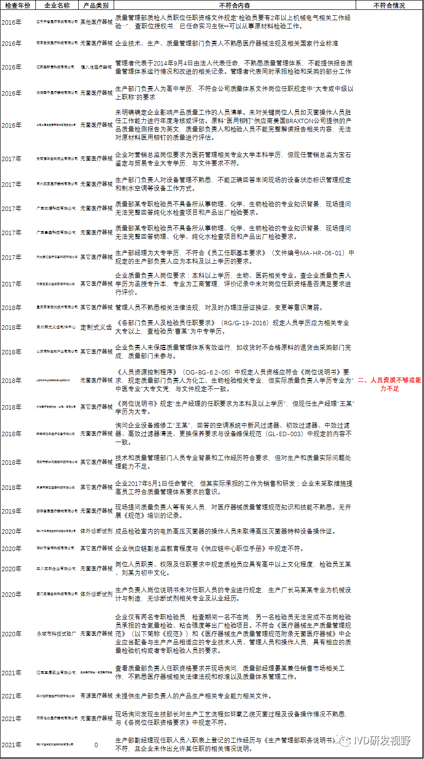 3.常见机构与人员不符合项汇总分析国家局2016-2022年飞行检查中关于机构与人员的不符合项,可以看出关于机构与人员的不符合项主要集中在几个方面:一、组织架构不清晰或人员配备不足;二、人员资质不够或能力不足;三、未开展相关培训或培训记录不符;四、人员健康管理不符合要求;五、洁净环境及卫生不符合要求。