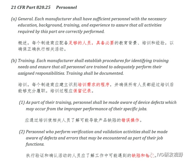 根据FDA CFR 820.25,医疗器械制造商必须出示证明,证明其人员具有“必要的教育、背景、培训和经验”,以确保他们能够正确履行职责。 《GB/T 42061-2022/ISO 13485:2016 医疗器械质量管理体系 用于法规的要求》总要求和FDA CFR 820一致,仅在描述上有差别,均要求配备背景资质符合要求的人员,并通过培训提高人员的岗位胜任能力,同时保留培训记录。 《2017.02.03 一次性使用塑料血袋等21种医疗器械生产环节风险清单和检查要点》的第四种产品风险清单和检查要点对人员的检查要点写得非常清晰,企业可参照这个检查要点进行自查。