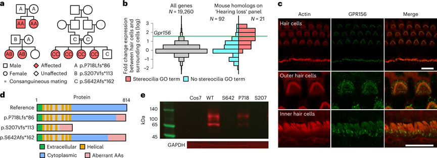 图3 GPR156中的功能缺失变异会导至隐性先天性听力损失(图源:[1])