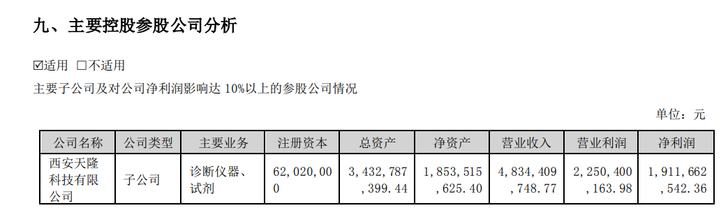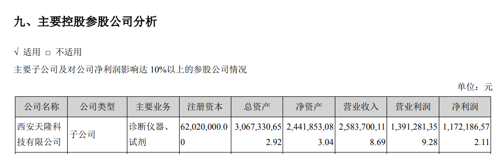 3月22日,科华生物发布2022年年度报告,公司营业收入为69.7亿元,同比增长43.58%;归属于上市公司股东的净利润为9.71亿元,同比增长14.16%;归属于上市公司股东的扣除非经常性损益的净利润为9.52亿元,同比增长13.88%。 备受关注的科华子公司天隆科技业绩如何呢?据年报披露,西安天隆2022年营收达48.3亿,净利润达到19.1亿。疫情这几年,很明显子公司天隆公司的盈利能力更强。截至目前,科华生物持有天隆公司的股份比例为62%。 2022年的西安天隆业绩 2021年的西安天隆业绩 2020年的西安天隆业绩 科华生物2023年经营计划 (1)拥抱集采,优化供应链、降本增效。在中国体外诊断市场快速发展以及国家政策大力倡导的背景下,集采、国产替代成为明显的行业发展趋势,公司作为深耕体外诊断市场的老牌企业,具备为客户提供体外诊断整体解决方案的能力。2023 年,公司将持续深耕细作自产产品业务,加强长板,集中精力打造龙头核心产品,借助集采和国产替代机遇提升市场影响力。同时,公司将在行业趋势的引领 下,优化供应链,降本增效。 (2)产业链纵深发展,为客户提供多元化服务。受惠于诊断检测量的增加以及新标志物的发现,全球体外诊断试剂原料市场近年来保持稳定增长。IVD 核心原料产业是牵一发而动全身的战略领域,该领域的发展和进步,能够保障体外诊断产品生产研发的战略安全。基于此,2023 年,公司投入资源,涉足体外诊断试剂原料市场,向上拓展公司业务。在向产业链上游发展的同时,公司也积极向产业链下游布局,公司将加快医学实验室等医疗检测机构的建设,希望实现全产业链覆盖,为客户提供更加多元化的服务。 (3)持续提升研发体系,推动产品迭代。公司将持续加大研发投入,引进高科技人才,围绕重点研发项目,落实研发项目管理制度,持续改进生化、酶免、分子等产品线产品质量,进行产品升级迭代。中国宠物市场的快速发展带动宠物诊疗需求的上升,公司在研生化、凝血、发光 POCT 等产品,2023年将在宠物市场实现零的突破。 (4)推进数智化战略落地。 依托公司自产生免流水线和分子流水线,协助医院、血站建立智慧化诊断实验室通用平台。公司在智慧化诊断实验室规划阶段可帮助实验室梳理工作流程,识别风险,降本增效,建立规范、科学、高效的管理体系;运营阶段通过数据可视 化、流程智能化提升实验室管理水平,为临床诊疗和决策提供可靠支撑。 (5)布局居家自检产品市场 。随着人们健康意识的不断提高,居家检测能够帮助人们早期发现疾病,是健康管理的首要环节。过去的几年,海外市场已经充分验证了居家检测的可行性。随着技术突破、市场成熟、居家自检产品研发和注册细则完善,中国居家检测市场将迎来快速发展。公司在体外诊断领域有深厚的技术积累,为布局居家自检领域奠定良好基础,有利于市场规模的拓展。未来公司重点关注呼吸、消化和生殖等领域的居家检测产品,与数字化设备和软件相结合,构建个人健康管理生态系统。 (6)持续拓展海外市场。在未来全球医疗新基建的浪潮中,公司将以中国和新兴市场国家为主要增长动力,同时通过在发达国家持续耕耘,构建品牌知名度和影响力,加速全球化渗透。 (7)优化资本运作。充分利用资本市场,在资金与产业紧密结合的“产投模式”下,加速孵化新产品和新项目,进而打造 IVD 产业全生命 周期链条的“孵化-投资-陪伴-增值-运作”闭环,形成以科华公司为核心的产业集聚和生态效应。