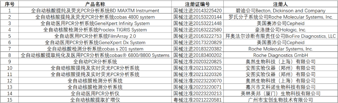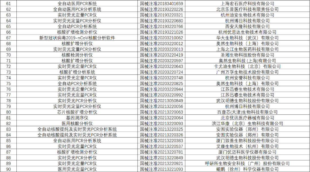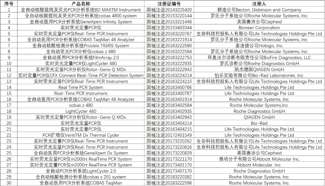 表 1 PCR试剂盒公司列表 PCR试剂盒年度批准情况见图6。