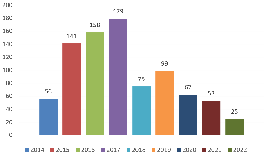 图6 PCR试剂盒年度获批图 备注:产品年度按注册证编号前4位统计,有些产品的年度和获批年度不一致。