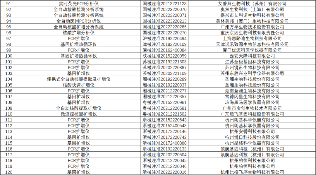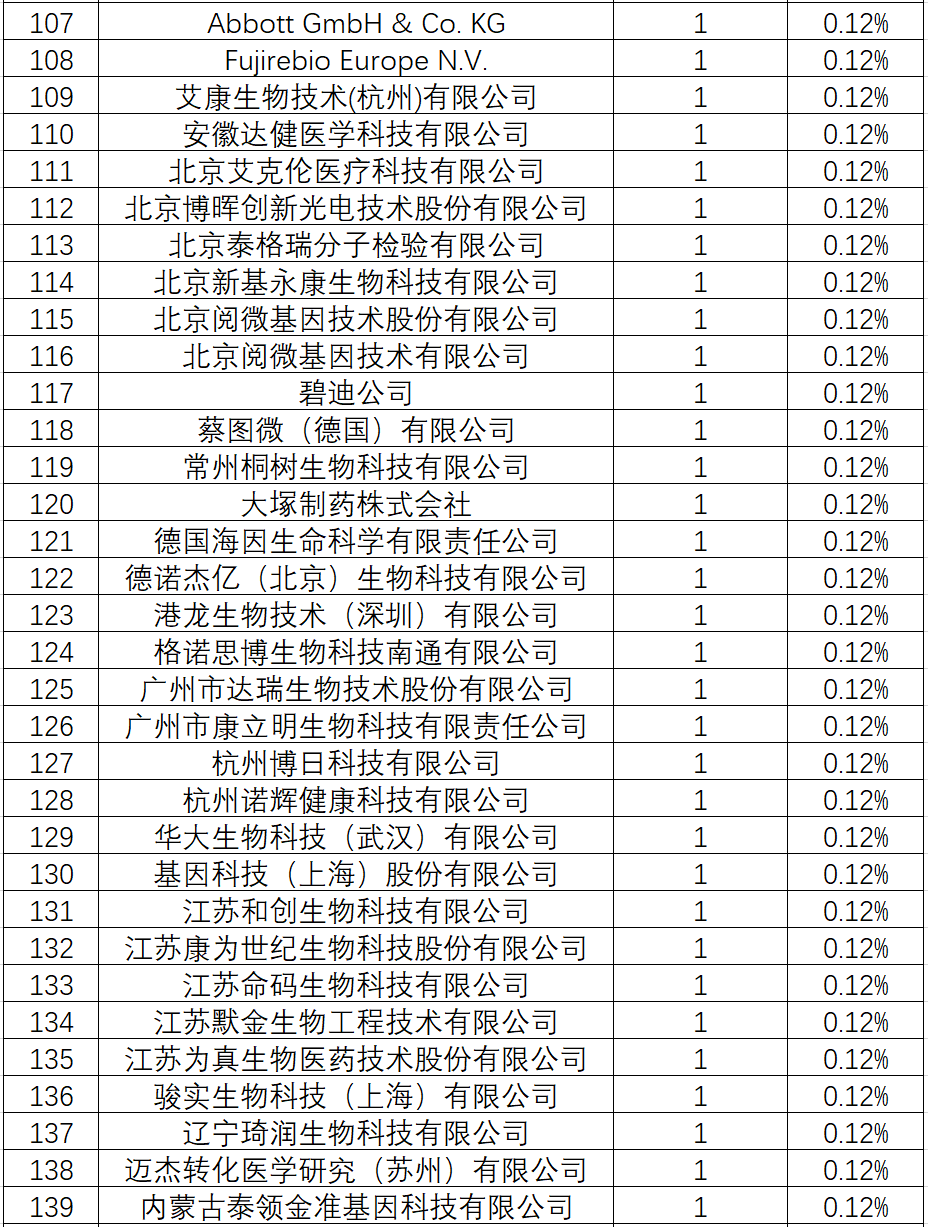 (三) PCR试剂盒+PCR仪器 不同的公司根据自身情况有着不同的商业布局,有的只设计开发PCR试剂,有的公司只设计开发PCR仪器(开放性平台),而有的公司则是同时布局PCR试剂和PCR仪器,目前共有22家公司同时布局PCR试剂和PCR仪器,具体数据见表5。近年来随着IVD行业的快速发展,其他IVD细分领域(非核酸扩增领域)两手布局(试剂+仪器)的公司也在变多,后续在其他细分领域的分析报告中会阐述。