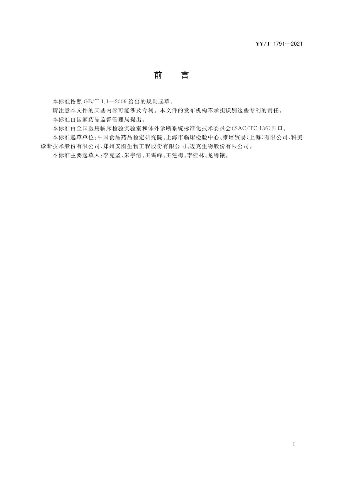 本标准由国家药品监督管理总局提出,由全国医用临床检验实验室和体外诊断系统标准化技术委员会(SAC/TC 136)归口。