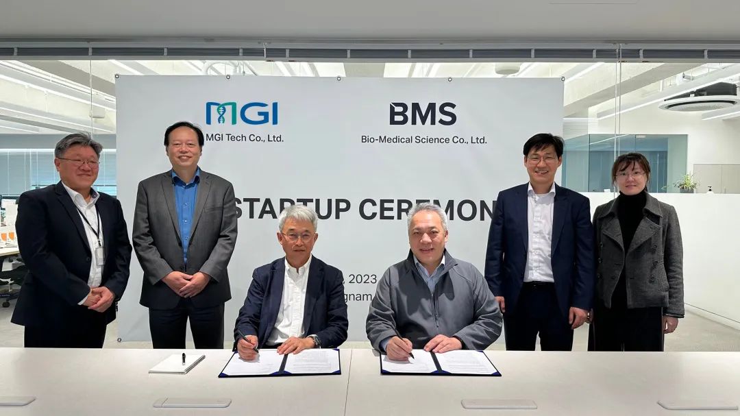 2023年4月26日,华大智造与韩国领先的生物医学公司Bio-medical Science (BMS)正式宣布韩国首家客户体验中心在天安市正式启用,旨在为当地客户和合作伙伴提供优先体验华大智造先进技术及创新产品的机会。华大智造总裁余德健、华大智造亚太区负责人谭宏东博士、韩国BMS金善基社长等出席开幕仪式。