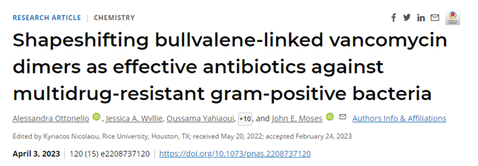 近期,关于耳念珠菌(Candida auris,C. auris)在美国一半以上州传播的消息引发网民关注。虽然这种真菌的主要威胁集中在需要用到辅助医疗器械的特殊人群身上,但值得注意的是,出现了许多对棘白菌素耐药的病例,而棘白菌素是最推荐用于治疗耳念珠菌感染的抗真菌药物。美国疾病控制与预防中心因此将C. auris认定为一种紧迫的抗生素耐药性(antimicrobial resistance,AR)威胁。 耐药性一直是一项严重的公共卫生威胁,被世界卫生组织列为前十大威胁之一。每年仅在美国就有近300万人感染耐药细菌和真菌,导至约3.5万人死亡。虽然抗生素在治疗感染方面至关重要,但过度使用已导至耐药菌株的发展。这些感染对治疗构成了重大挑战。 现在,冷泉港实验室(Cold Spring Harbor Laboratory,CSHL)的John E. 图1 研究成果(图源:[1]) Moses教授从观察军事训练演习的坦克中得到了形态变化抗生素的灵感。坦克具有旋转炮塔和灵活的移动能力,可以快速应对可能的威胁。他开始思考能否创造出一种具有类似灵活结构的药物,可以根据环境改变形状。“这个想法非常疯狂,我不知道该怎么实现它。”他说。 几年后,Moses教授了解到了一种叫做牛烯(bullvalene)的分子。牛烯是一种流动分子,意味着它的原子可以交换位置,从而赋予它超过一百万种可能的构象——正是Moses教授所寻找的流动性。 新抗生素的化学结构是由Moses教授设计并由其实验室合成的。Moses教授的合作伙伴、澳大利亚纽卡斯尔大学的Thomas Fallon博士提供了形态变化的牛烯核心。Moses教授表示,有一个评论者称这项研究是“我见过的最酷、最复杂的天然产物衍生物论文”。 万古霉素是一类糖肽类抗生素,用于治疗从皮肤感染到脑膜炎的各种耐药性细菌感染。然而,近几十年来,出现了一些对之产生耐药性的细菌,包括MRSA(耐甲氧西林的金黄色葡萄球菌)、VRSA(耐万古霉素的金黄色葡萄球菌)和VRE(耐万古霉素的肠球菌属细菌)等。Moses教授认为,将其与牛烯结合起来可以提高万古霉素对抗细菌的效果。 他转向了快速、高产率的“点击化学”技术,该技术又被称为“链接化学”、“速配接合组合式化学”,可以通过小单元的拼接,快速可靠地“点击”分子在一起,使反应更有效率。2022年,该技术的主要贡献者获得了诺贝尔化学奖。 “点击化学很棒,”Moses教授说道,他曾在两届诺奖得主K. Barry Sharpless的指导下学习这一革命性的技术,“这给了你确定性和制造复杂物质的最好机会。” 利用这种技术,Moses教授和他的同事创造了一种新的抗生素,具有两个万古霉素“弹头”和一个流动的牛烯中心。 图2 新型“变形”抗生素结构示意(图源:[2]) 万古霉素能够杀灭细菌的关键机制在于,它能够与细菌细胞壁生物合成途径中的一个重要分子结合,从而破坏细菌细胞壁的合成过程,导至细菌死亡。而细菌如果改变了该分子与万古霉素结合部位的关键二肽,或通过发生变异,表达一种能够催化替代合成途径的酶,就能够继续合成细胞壁,形成对万古霉素的耐药性。不过,这次Moses教授合成的可变形万古霉素二聚体则无惧于这种变化。另外,Moses教授还发现,“变形”万古霉素能够破坏翻转酶 MurJ和脂质II之间形成的复合物的稳定性,该复合物同样对细菌细胞壁的生长和维护十分关键,这意味着“变形”万古霉素又开辟了一条杀死细菌的新通道。 Moses教授与阿德莱德大学的Tatiana Moses教授解释说,研究人员可以利用点击化学和形态变化的抗生素创造出多种新药物。这样的抗感染武器甚至可能是我们物种生存和进化的关键。 “如果我们能发明能够决定生死的分子,”他说,“那将是最伟大的成就。” 责编|风立宵 End 参考资料: |