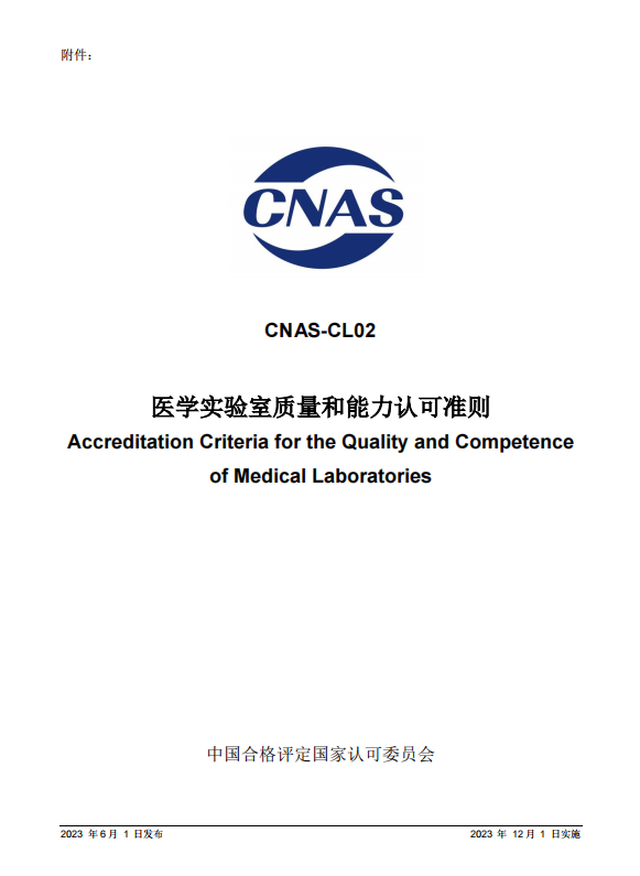 近日,认可委发布《关于发布CNAS-CL02:2023〈医学实验室质量和能力认可准则〉的通知》。